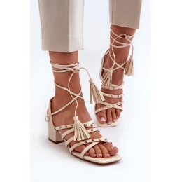 Šněrovací sandály na nízkém podpatku zdobené nýty béžové Chrisele
