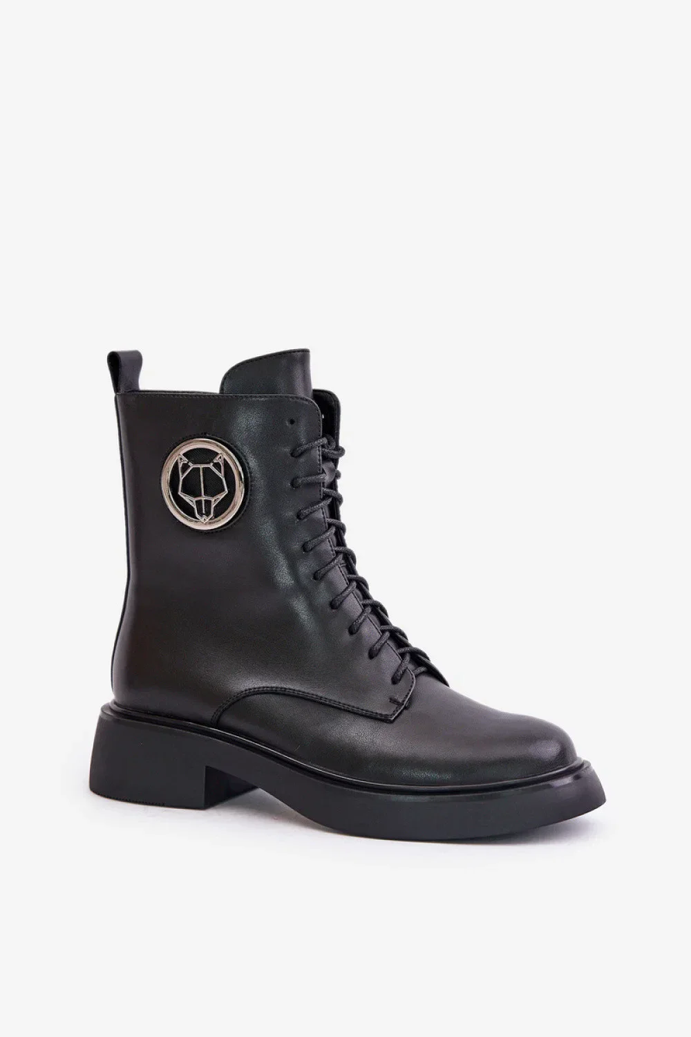 Dámské kozačky z přírodní kůže jsou elegantní a pohodlnou volbou pro každodenní nošení. Jsou vybaveny šněrováním i zapínáním na zip, což usnadňuje obouvání a nazouvání bot. Plochý podpatek zajistí pohodlí i při delším nošení. Zaoblená špička. Ozdoba na boku svršku, která dodává botám jedinečný nádech. Zateplení pomocí deky na boty. Nezbytná součást vašeho podzimně-zimního šatníku!