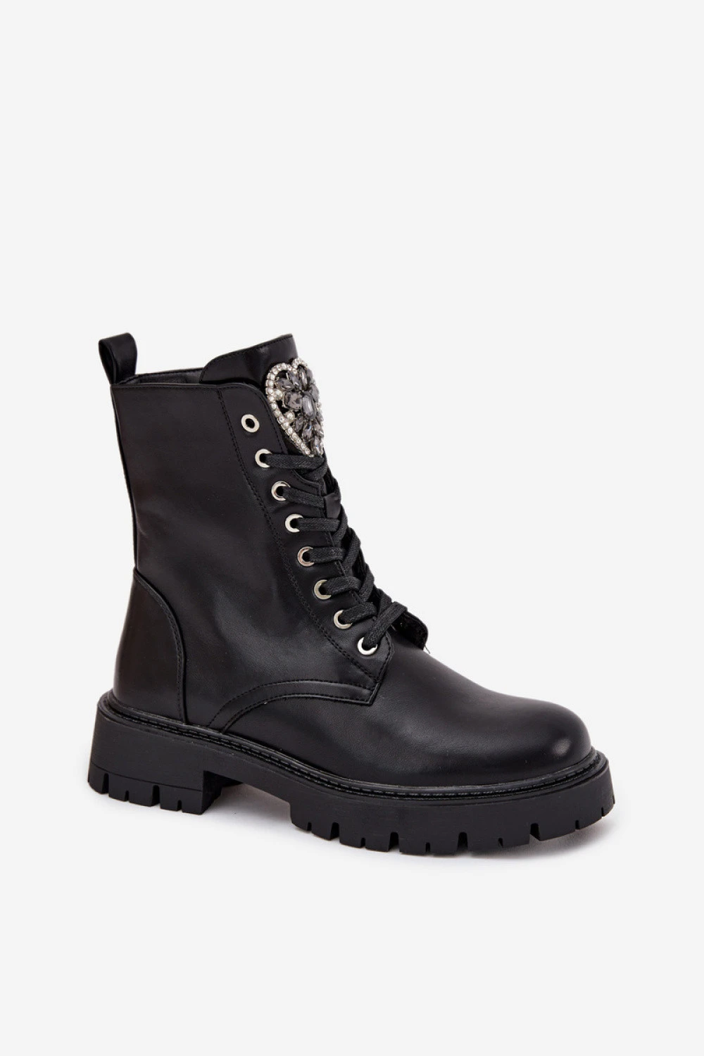 Dámské botky vyrobené z ekokože jsou módní a pohodlnou volbou na podzim a zimu. Vystlané textilní podšívkou poskytují teplo a pohodlí v chladnějších dnech. Knížka nad kotníkem, šněrování vpředu a další zip na boku knížky zajišťují snadné nastavení a pohodlné obouvání. S nízkým podpatkem a platformou zaručují stabilitu po celý den. Bižuterní ozdoba na jazyku dodává elegantní akcent. Tyto botky skvěle ladí s různými stylizacemi a jsou skvělou volbou na podzimní a zimní sezónu.