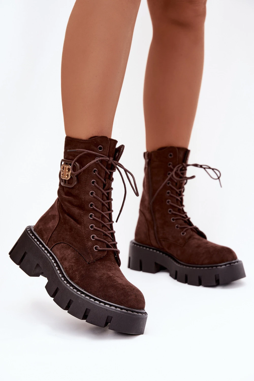 Botky pro ženy vyrobené z ekokože. Model s přezkou a přídavným šněrováním umožňuje dokonalé přizpůsobení noze. Vystlaný interiér s měkkým fleecem zajišťuje pohodlí v chladných dnech a platforma s podpatkem poskytuje stabilitu. Jemný detail na svršku přidává elegantní, módní akcent. Skvěle ladí s každodenními outfitmi.