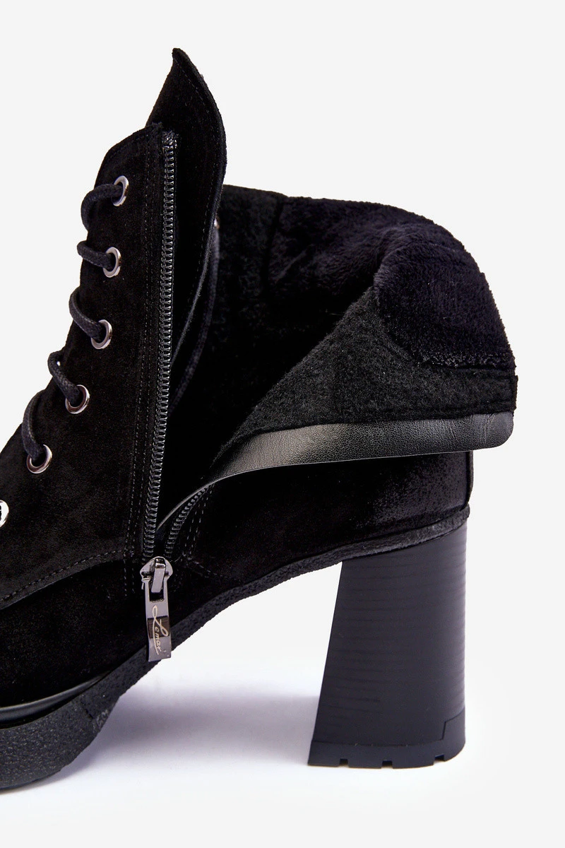 Šněrovací Zimní Boty Na Podpatku Černé model 21634844 - Boto