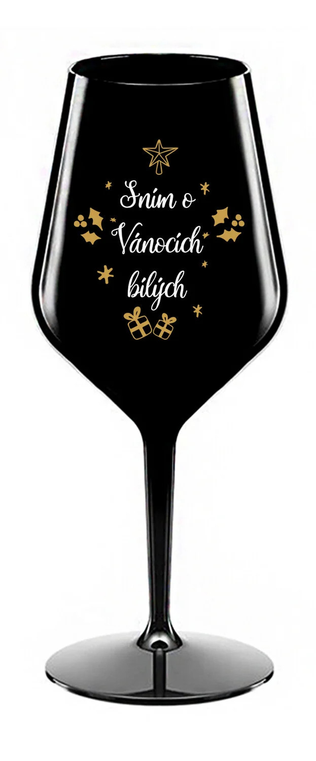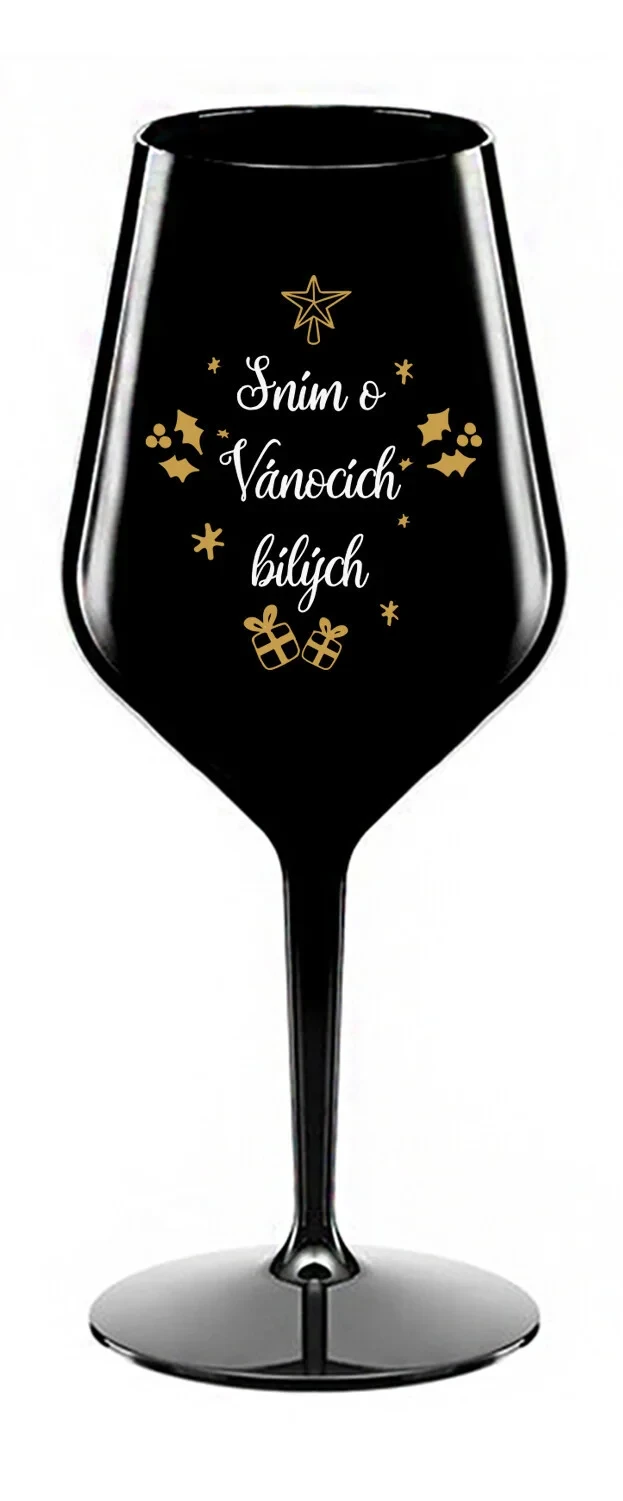 SNÍM O VÁNOCÍCH BÍLÝCH - černá nerozbitná sklenice na víno 470 ml