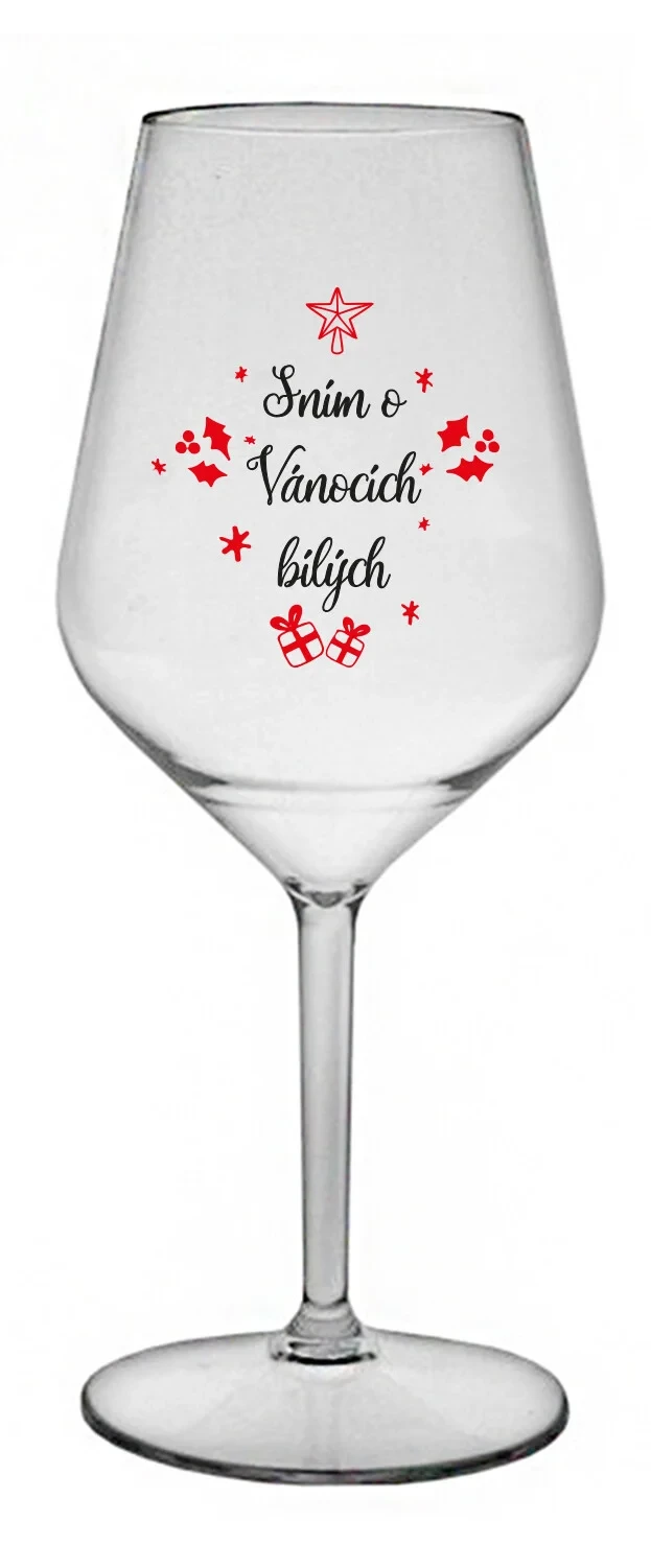 SNÍM O VÁNOCÍCH BÍLÝCH - čirá nerozbitná sklenice na víno 470 ml