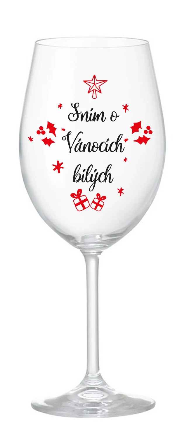SNÍM O VÁNOCÍCH BÍLÝCH - čirá sklenice na víno 350 ml