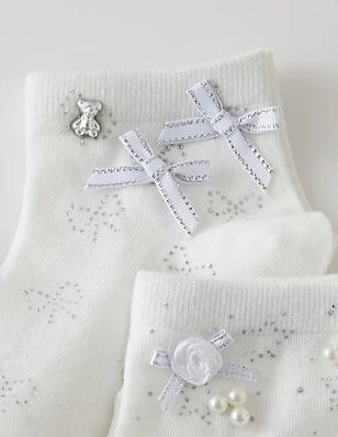 - cholewkę zdobią połyskujące cyrkonie, kokardki i koraliki