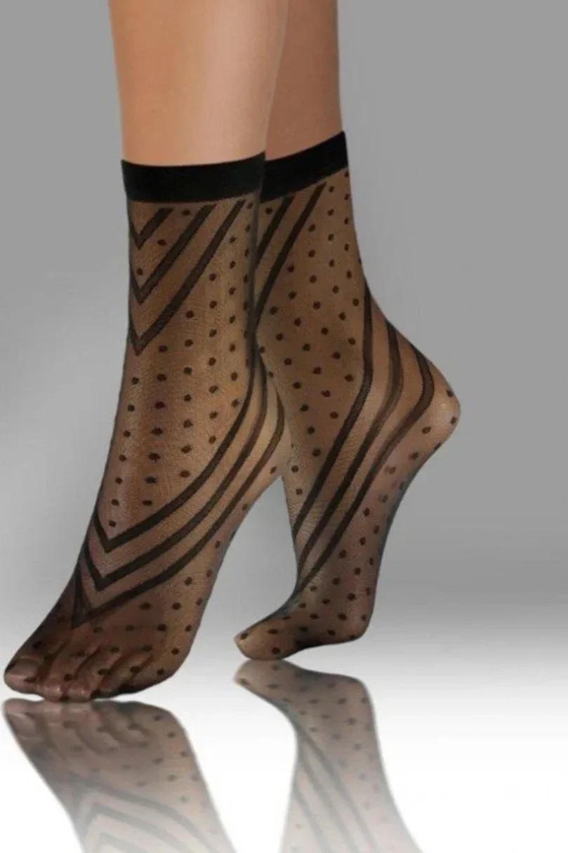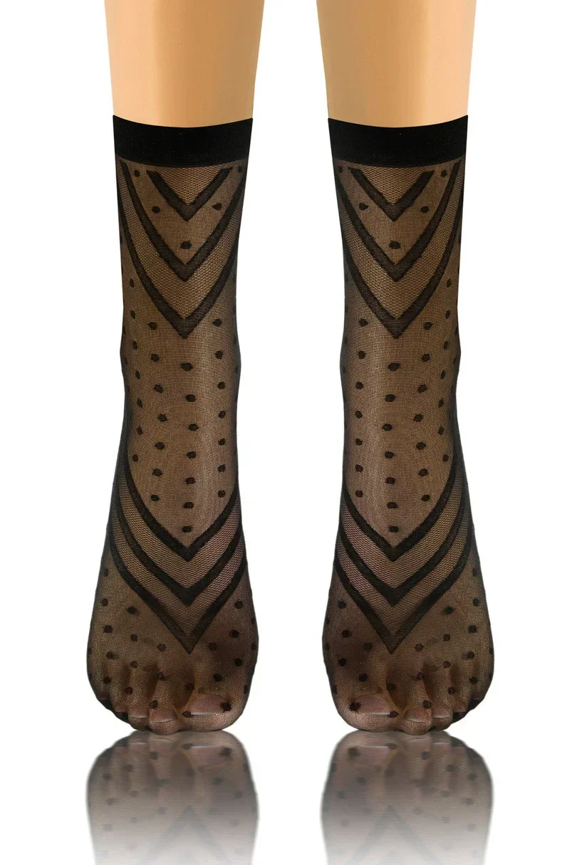 Dámské vzorované ponožky vyrobené z vysoce kvalitní bavlny, poskytují pohodlí, prodyšnost a trvanlivost. Dokonale přiléhají k noze, při nošení netlačí ani nekloužou.