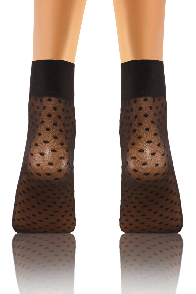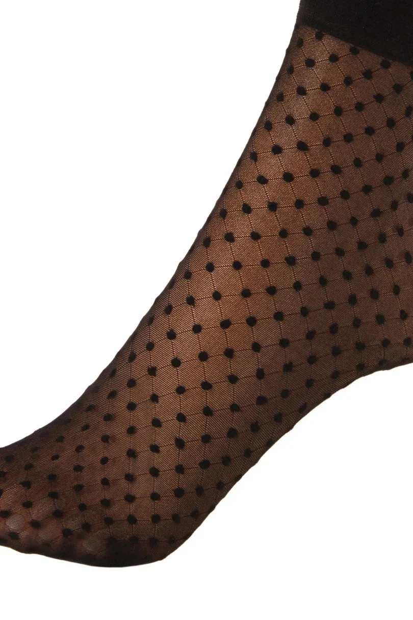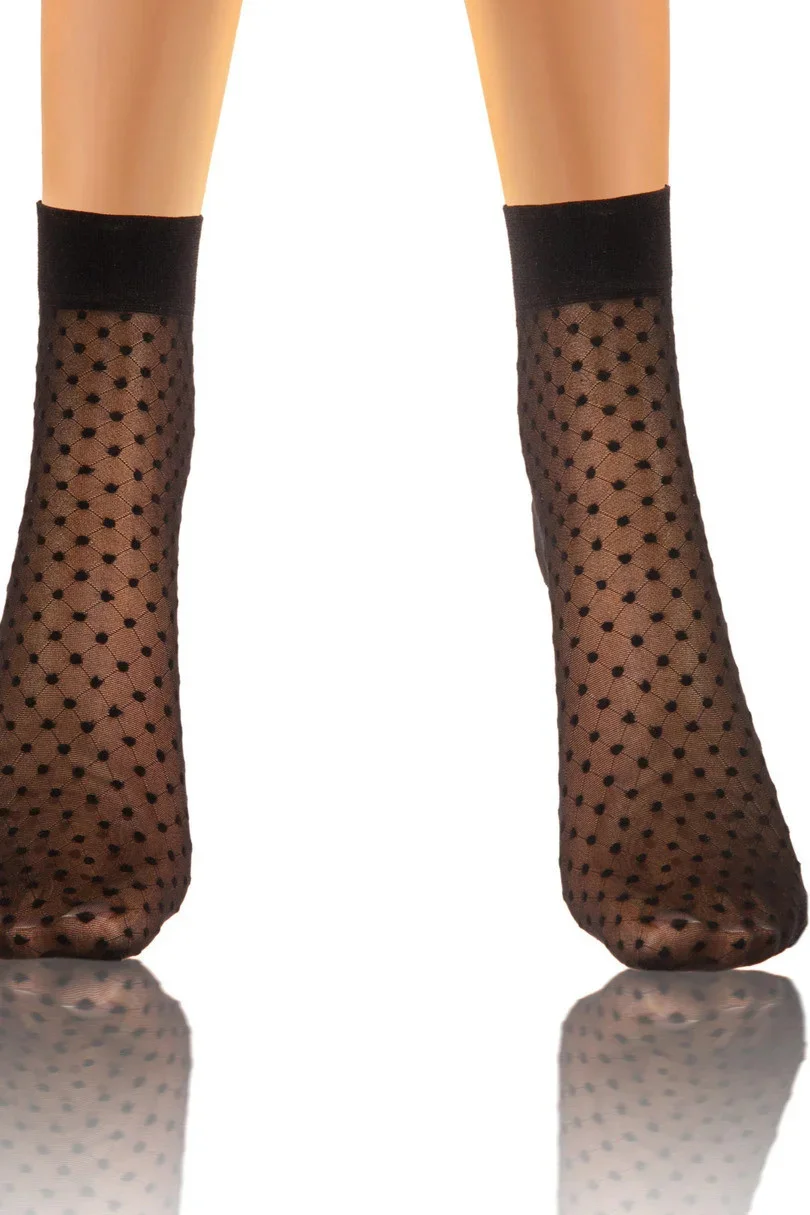 Ponožky WZ 12 od Sesto Senso jsou minimalistickou elegancí, která nikdy nevyjde z módy. Díky průhledné síťovině s jemným, rovnoměrným vzorem černých puntíků se tento model hodí jak ke každodennímu oblečení, tak k formálnějším outfitům. Hladký, černý lem zaručuje pohodlné nošení a perfektní přilnutí k noze. Díky použití vysoce kvalitních materiálů jsou ponožky lehké, pružné a velmi pohodlné.