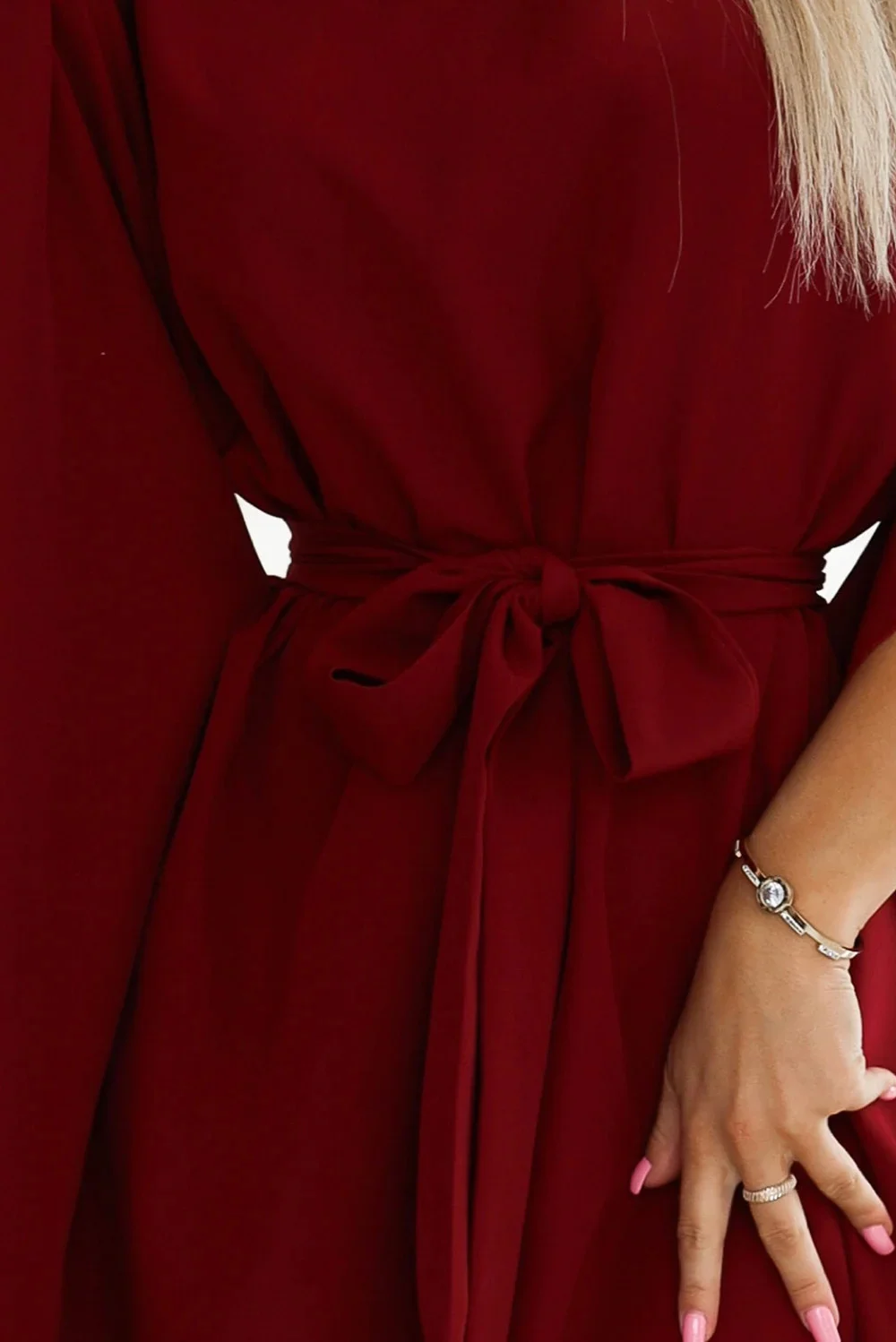 Přidání recenze k SOFIA Dámské šaty ve vínové bordó barvě se zavazováním v pase model 20584842 - numoco