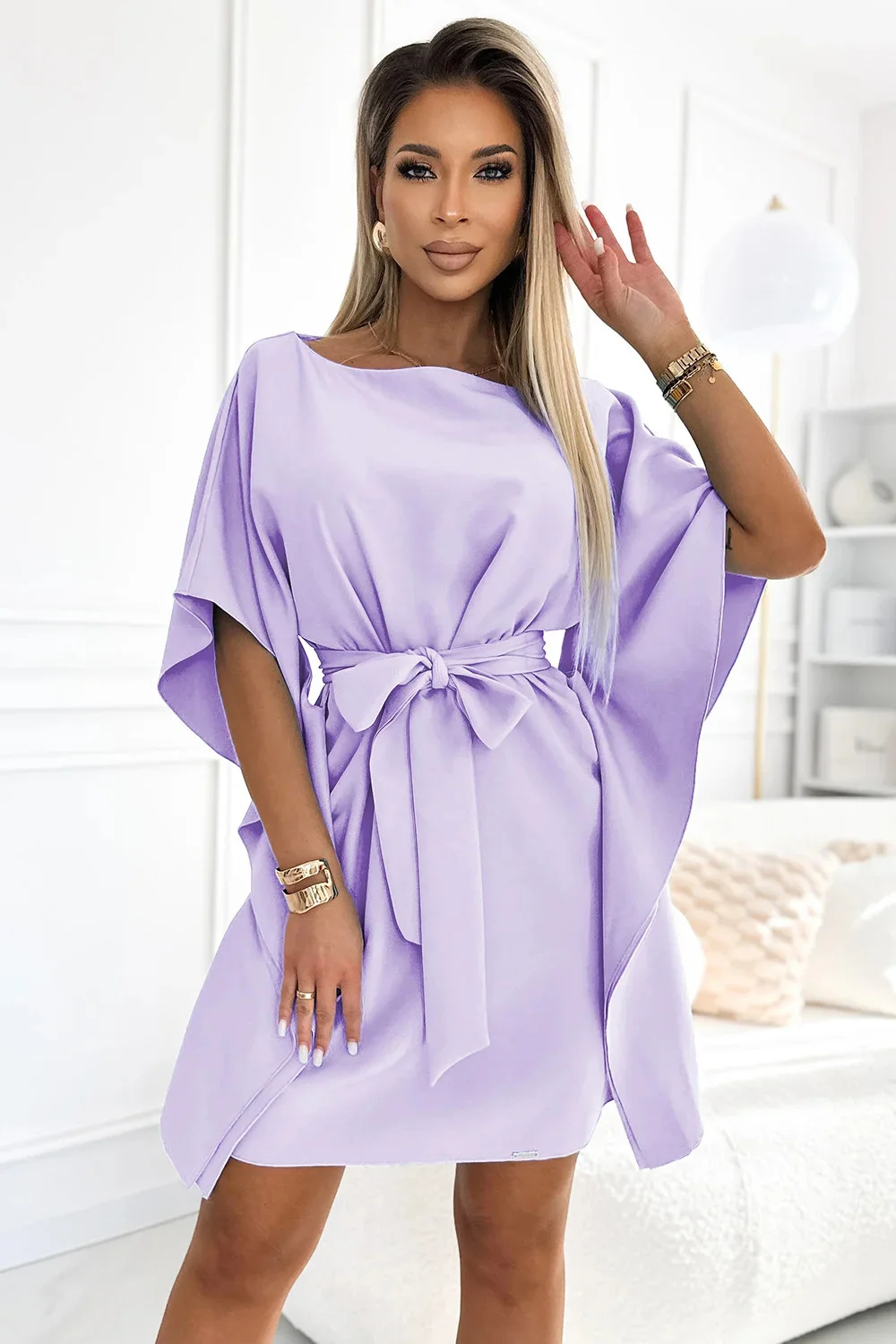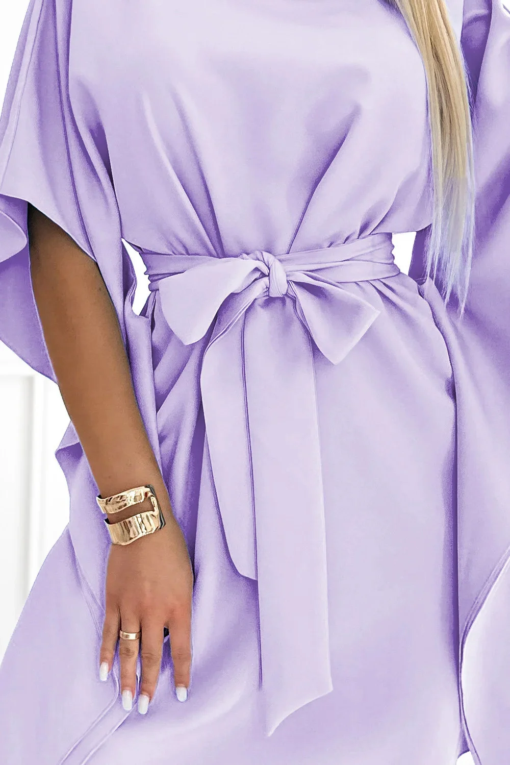 SOFIA dámské šaty ve vřesové barvě se zavazováním v pase model 20273096 - numoco