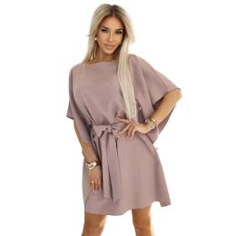 Sofia - motýlí šaty se zavazováním v pase. Jsou vyrobeny z kvalitní, na dotek příjemné tkaniny a představují se v elegantní moka mousse barvě. Jejich délka pod kolena a mírně vzdušný střih zdůrazňují ženský půvab a zároveň zajišťují pohodlí při nošení. Jsou navrženy a ušity v Polsku a představují ideální návrh pro každodenní nošení i pro zvláštní příležitosti. Značka Numoco.
