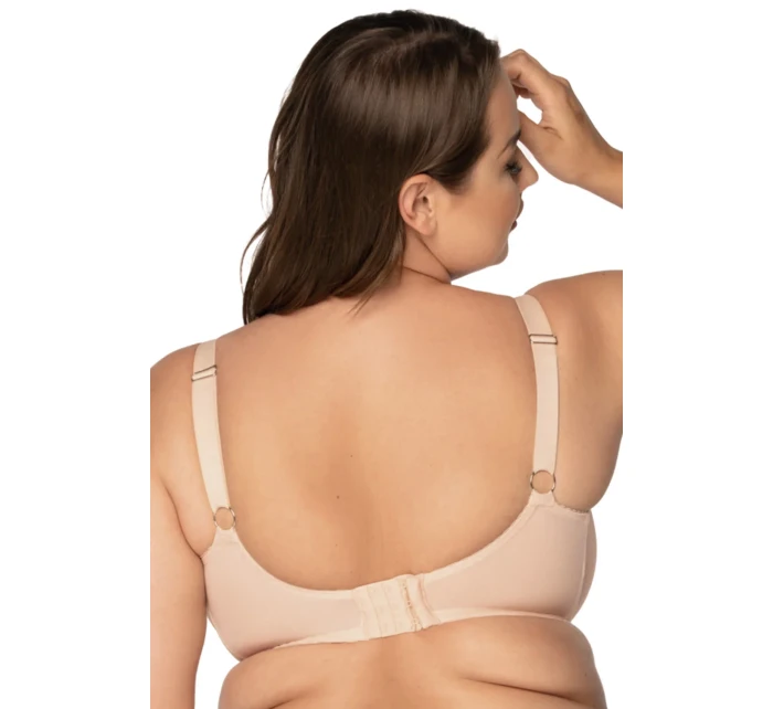 Krajkový návrh v univerzálním béžovém odstínu. Určeno pro dámy s plnějšími tvary. Střih s vysokým středem a trojitým vykrojením na košíčcích, které vytváří výjimečně kulatý tvar prsou. Zdůrazňuje pěkný výstřih ve tvaru tulipánu. Krajková horní část košíčků vyztužená elastickou síťovinou. Spodní část košíčků vyztužená stabilní látkou pro vynikající oporu. Dvojitá výztuž boční části košíčků, pohodlně stahuje poprsí dovnitř. Široká nastavitelná ramínka odolná proti vytahání a deformaci. Široký háček s třístupňovým nastavením zajišťuje stabilitu obvodu a nastavitelnost. Dvojité pohyblivé kostice zvyšují komfort používání, dokonale se přizpůsobí tělu při každém pohybu. Kovové doplňky neobsahují nikl.