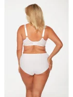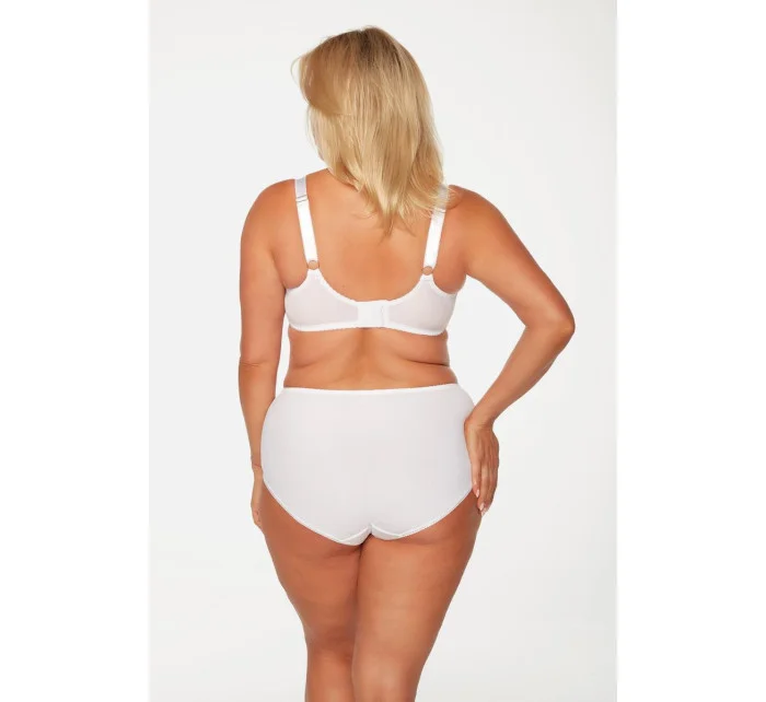 Sentimentální podprsenka soft, určená pro ženy s plnějšími tvary. Bílý vyšívaný vzor zvýrazňuje eleganci. Dvojitě zesílená boční část poskytuje výjimečnou stabilitu a skupuje prsa do středu. Spodní část košíčku je podšitá měkkou stabilní síťkou, což prádlo dodává lehkost. Pohyblivé boční kostice zajišťují přizpůsobení pohybu těla a zvyšují pohodlí nošení. Díky použití trojitého střihu košíčků jsou prsa zaoblená přirozeným způsobem. Trojitý háček ve všech velikostech je vyrobený z hladké mikrofibrčiny.