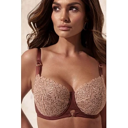 Podprsenka soft Liv II SC-1212 je elegantní návrh vytvořený pro ženy, které ocení jemnou estetiku a pohodlí nošení. Košíčky jsou vyrobeny z jemného béžového krajky s decentními zlatými nitěmi, které zdůrazňují linii poprsí a dodávají modelu luxusní charakter. Čokoládová mikrofáze doplňuje celkový vzhled a zajišťuje měkkost, hladkost a pohodlí po celý den. Zadní část podprsenky je vyrobena z mikrofáze, zdobené vyšívanými detaily, vytvářející jednotný a elegantní design. Nastavitelné ramínka a třístupňový háček umožňují perfektní přizpůsobení siluetě. Zlaté prvky mají certifikáty bezpečnosti, díky nimž jsou jemné a bezpečné pro pokožku.