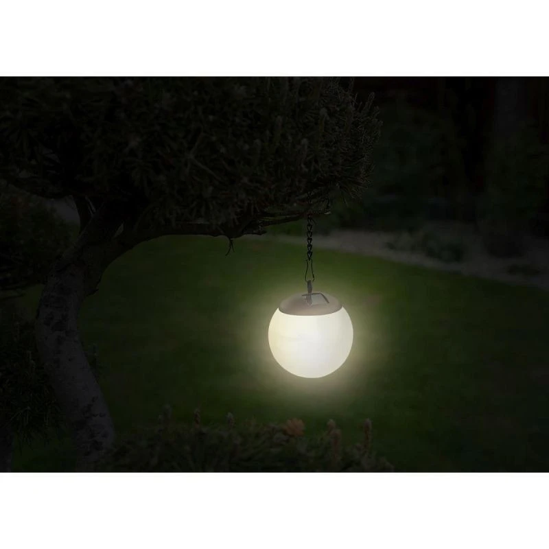 Je to snadné - závěsná solární LED lampa ve tvaru koule, která se přes den nabíjí solární energií a po setmění automaticky vydává příjemné teplé světlo.