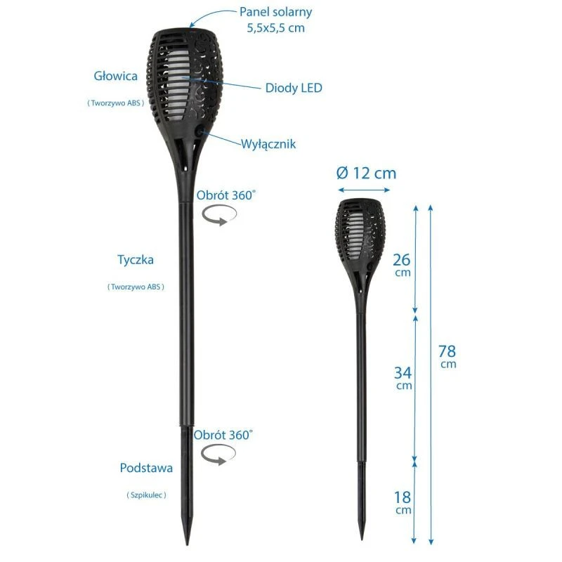 DANCING FLAMES SOLAR FLAME 12X12X78CM 36 LED je praktický a levný zdroj světla, který je vhodný zejména pro venkovní použití.