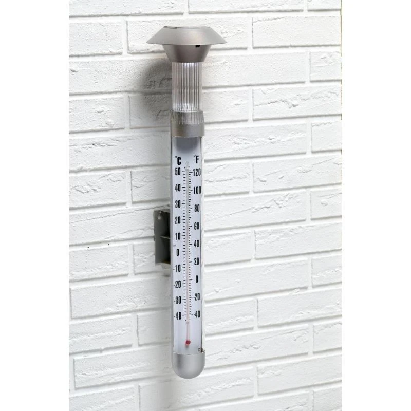 Zkontrolujte venkovní teplotu na první pohled s GRUNDIG SOLÁRNÍM TERMOMETREM S LED OSVĚTLENÍM WYS 97CM