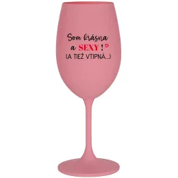 SOM KRÁSNA A SEXY! (A TIEŽ VTIPNÁ...) - ružový pohár na víno 350 ml