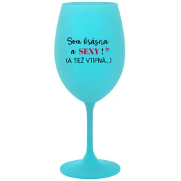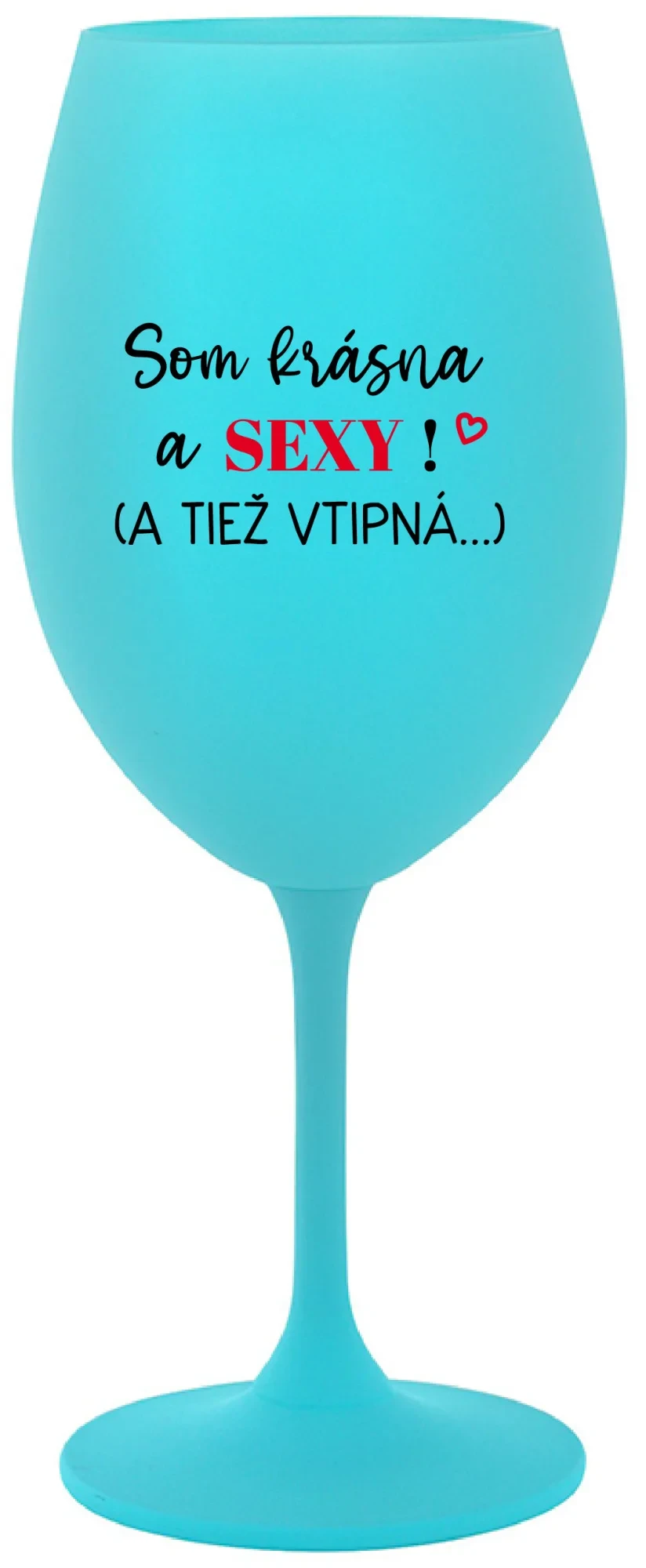SOM KRÁSNA A SEXY! (A TIEŽ VTIPNÁ...) - tyrkysový pohár na víno 350 ml