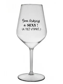 SOM KRÁSNY A SEXY! (A TIEŽ VTIPNÝ...) - čirá nerozbitná sklenice na víno 470 ml