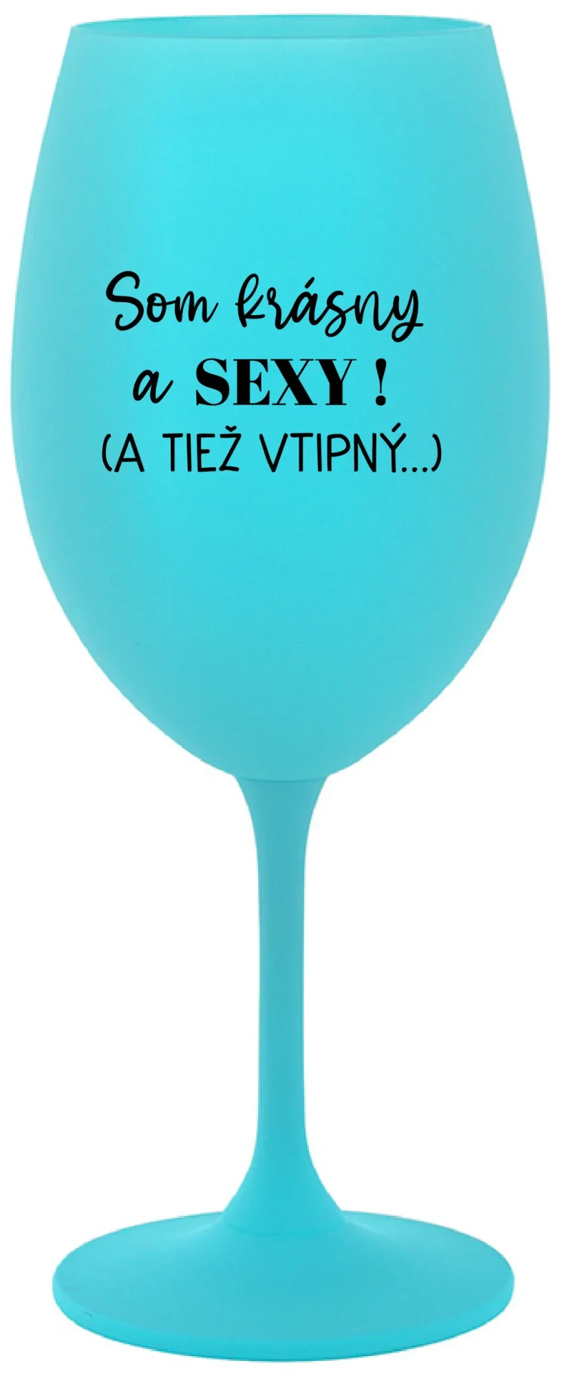 SOM KRÁSNY A SEXY! (A TIEŽ VTIPNÝ...) - tyrkysový pohár na víno 350 ml