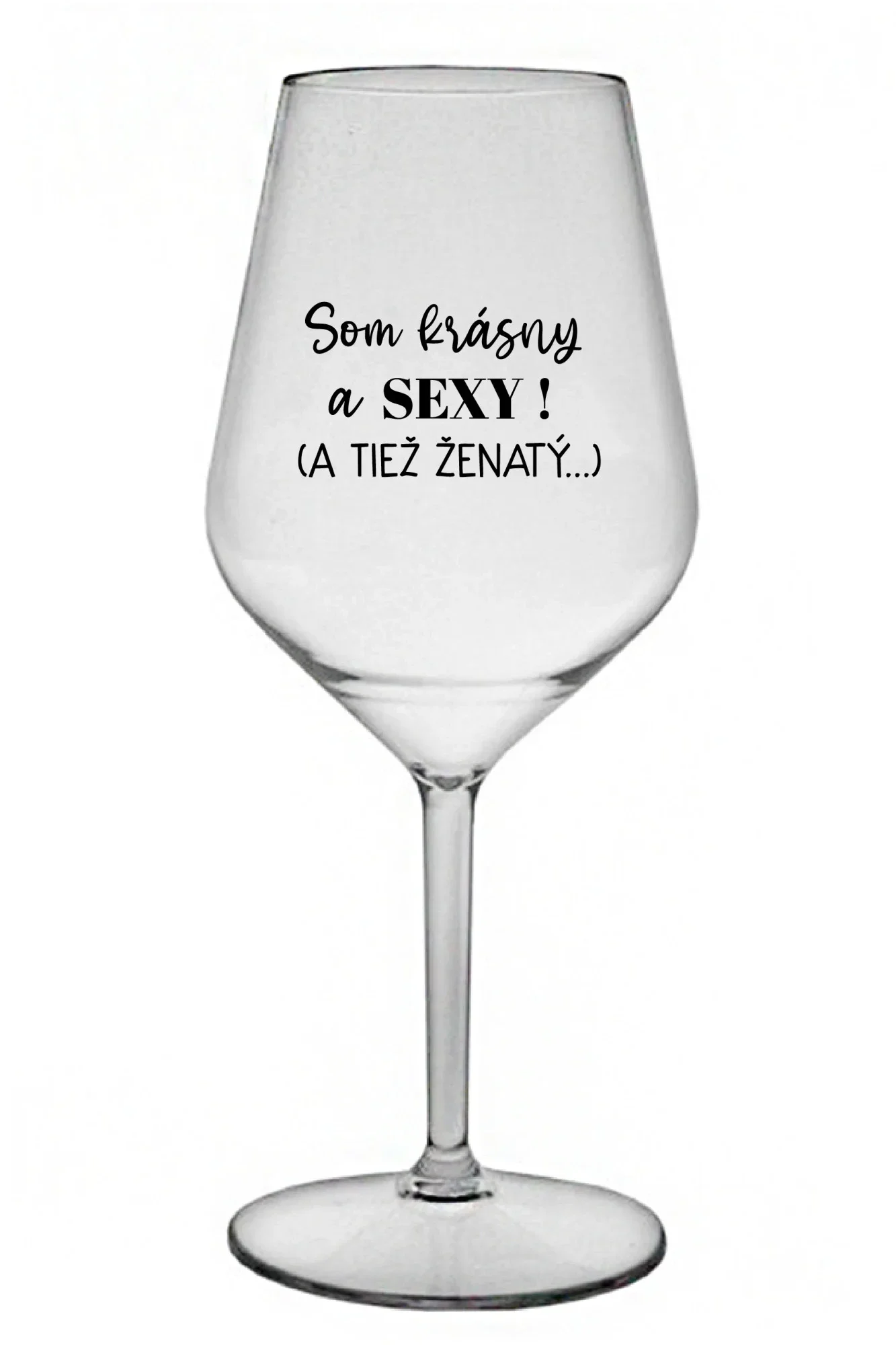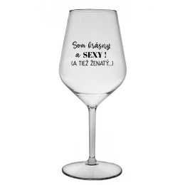SOM KRÁSNY A SEXY! (A TIEŽ ŽENATÝ...) - priehľadný nerozbitný pohár na víno 470 ml