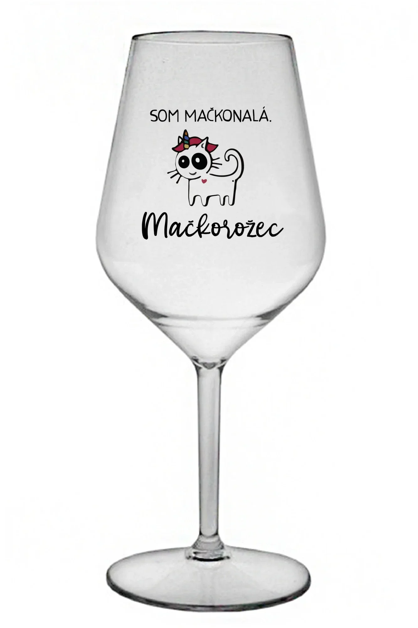 SOM MAČKONALÁ. MAČKOROŽEC - priehľadný nerozbitný pohár na víno 470 ml