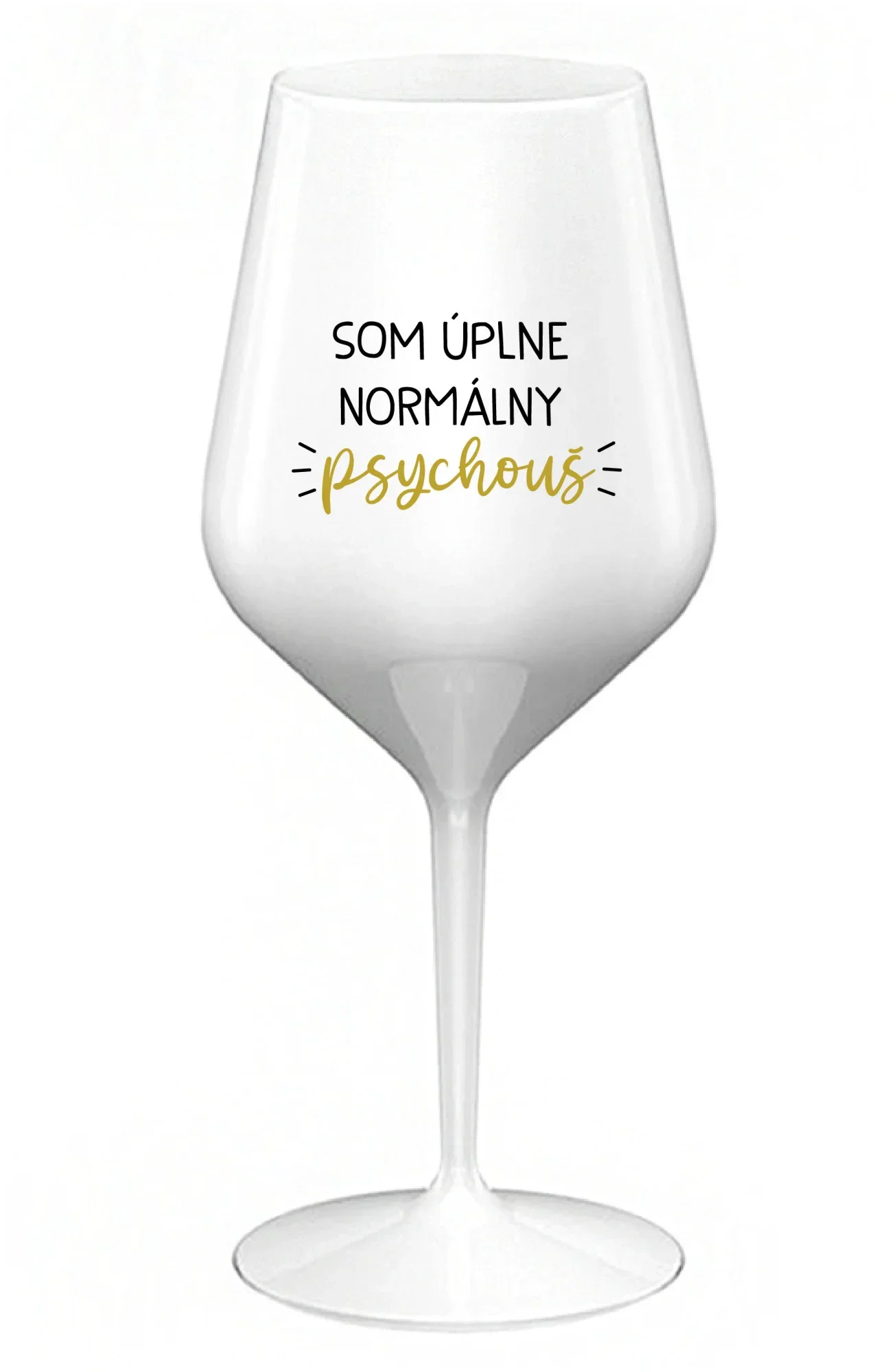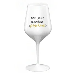 SOM ÚPLNE NORMÁLNY PSYCHOUŠ - biely nerozbitný pohár na víno 470 ml