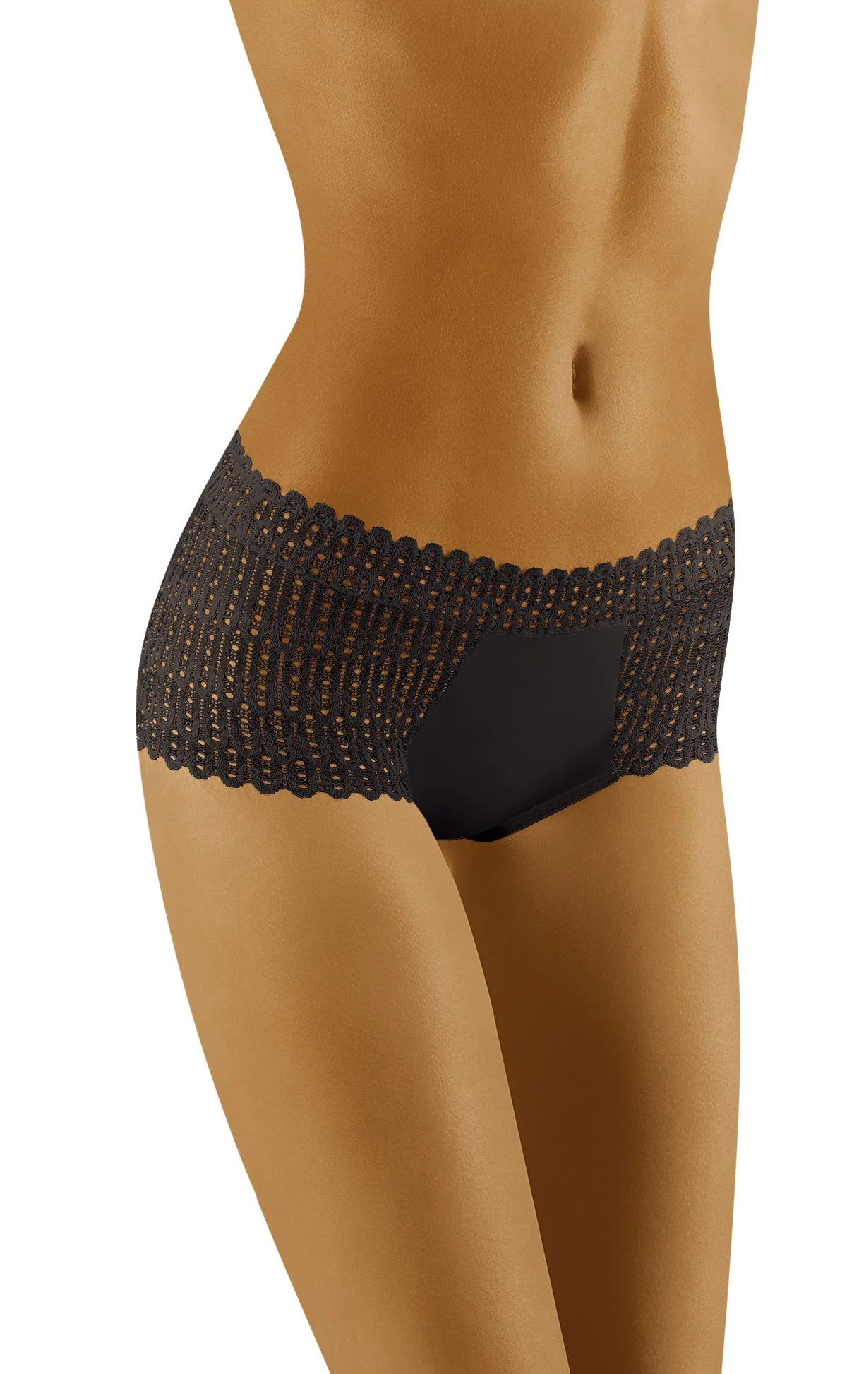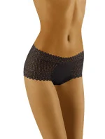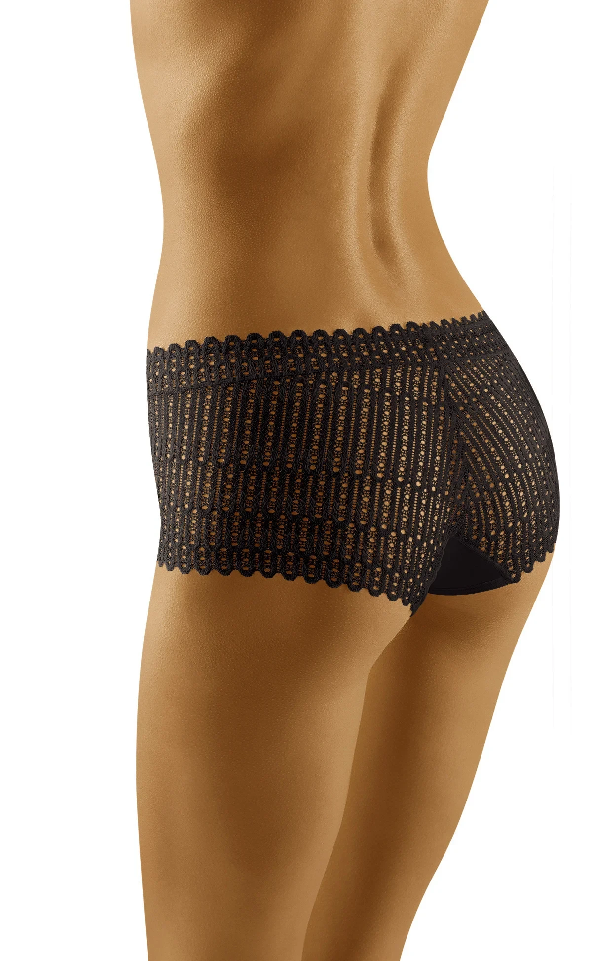 Působivé kalhotky vyrobené téměř výhradně z krajky. Střih a'la šortky. Zadní část a boky jsou projmuté, jemné, velmi ženské. Přední část je doplněna vsadkou z hladké, příjemné látky, která neprosvítá. Složení: 83 % polyamid, 17 % elastan.