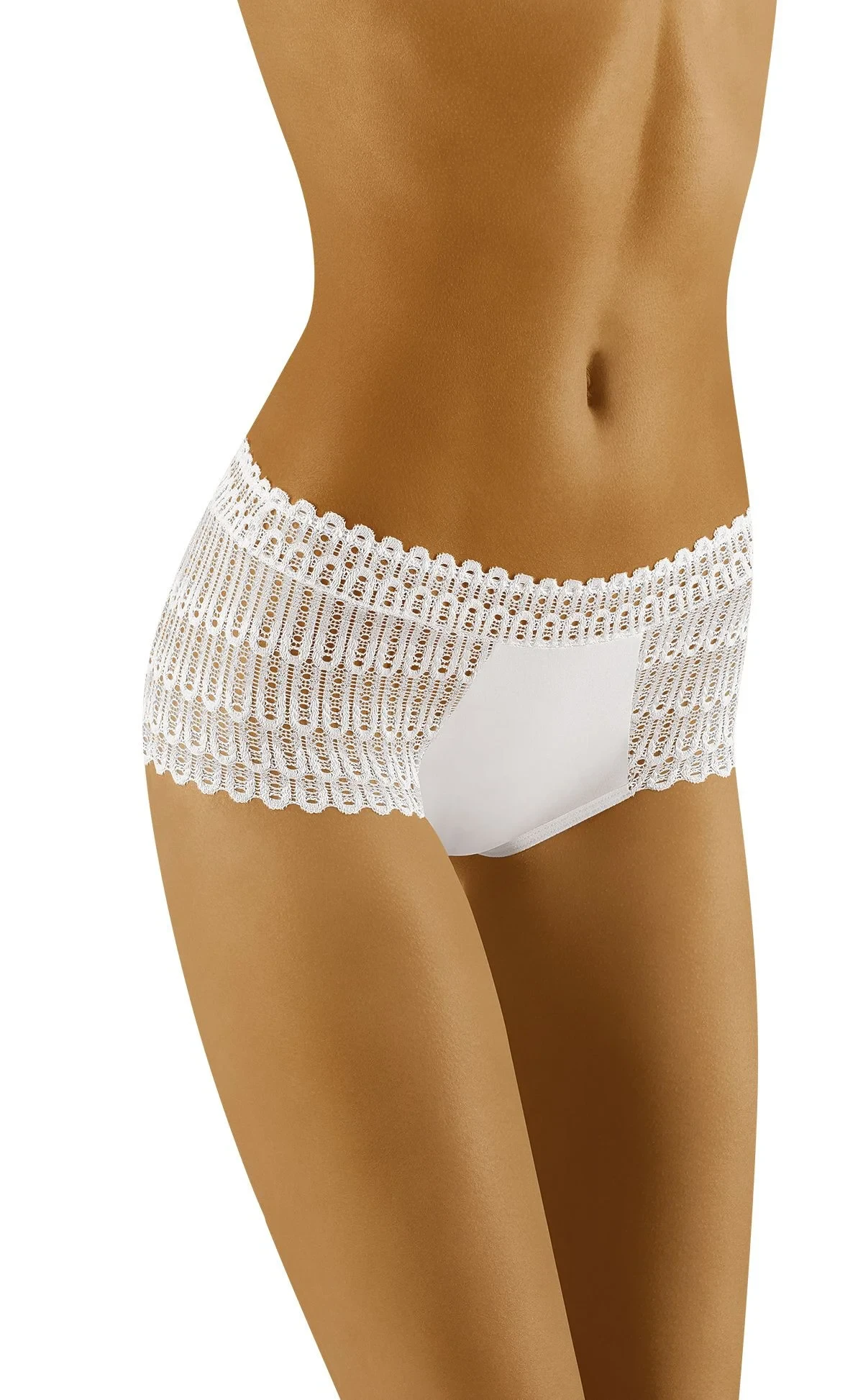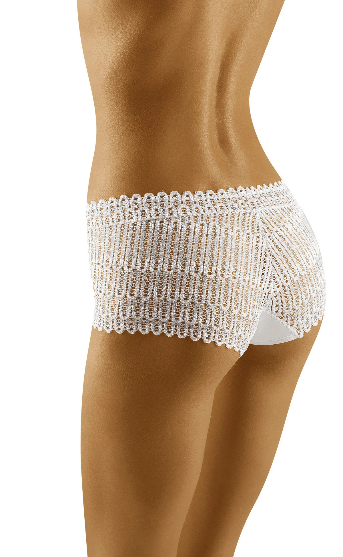Nápadné kalhotky vyrobené téměř výhradně z krajky. Střih a'la šortky. Zadní strana a boky jsou prolamované, jemné, velmi ženské. Přední díl je doplněn vložkou z hladké, příjemné látky, která neprosvítá. Složení: 83 % polyamid, 17 % elastan.EAN čárové kódy zboží jsou: