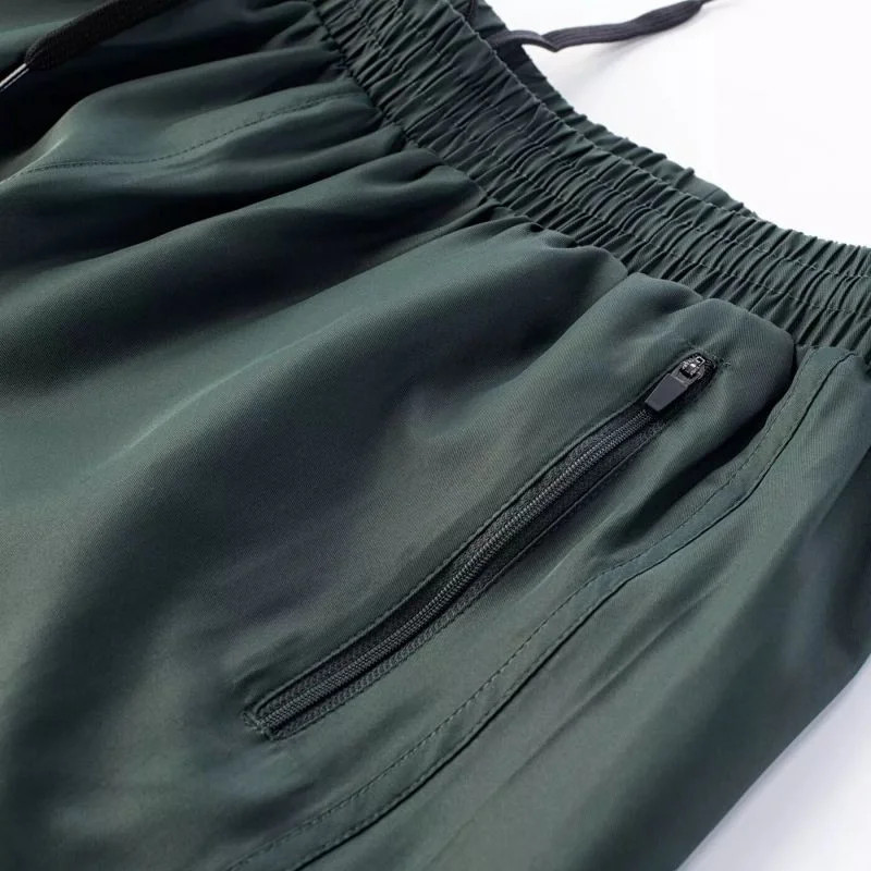 Pánské tréninkové šortky HICKO mají široký elastický pas se stahovací šňůrkou, který umožňuje individuální nastavení a přizpůsobení v pase. Tento model je vyroben ze syntetických materiálů, které dobře odvádějí vlhkost. Dobře se osvědčí při různých sportovních aktivitách. Dvě boční kapsy na zip zajistí bezpečné uložení drobných předmětů. Volný střih zajistí plný rozsah pohybu během cvičení.