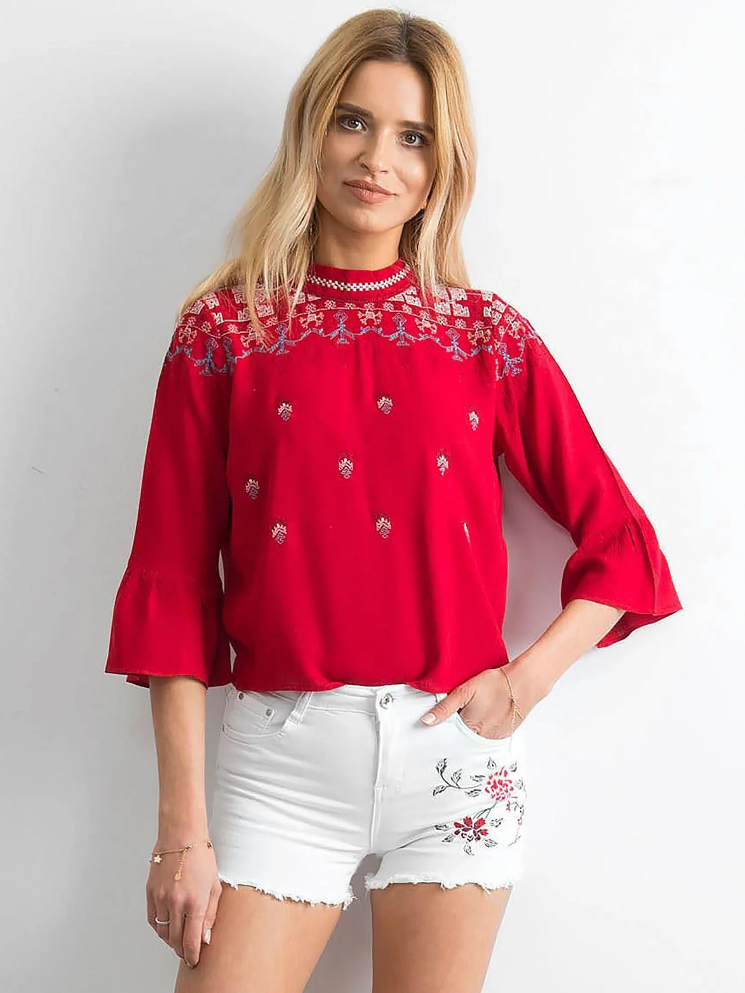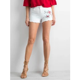 Džínové šortky s výšivkou bílé barvy.