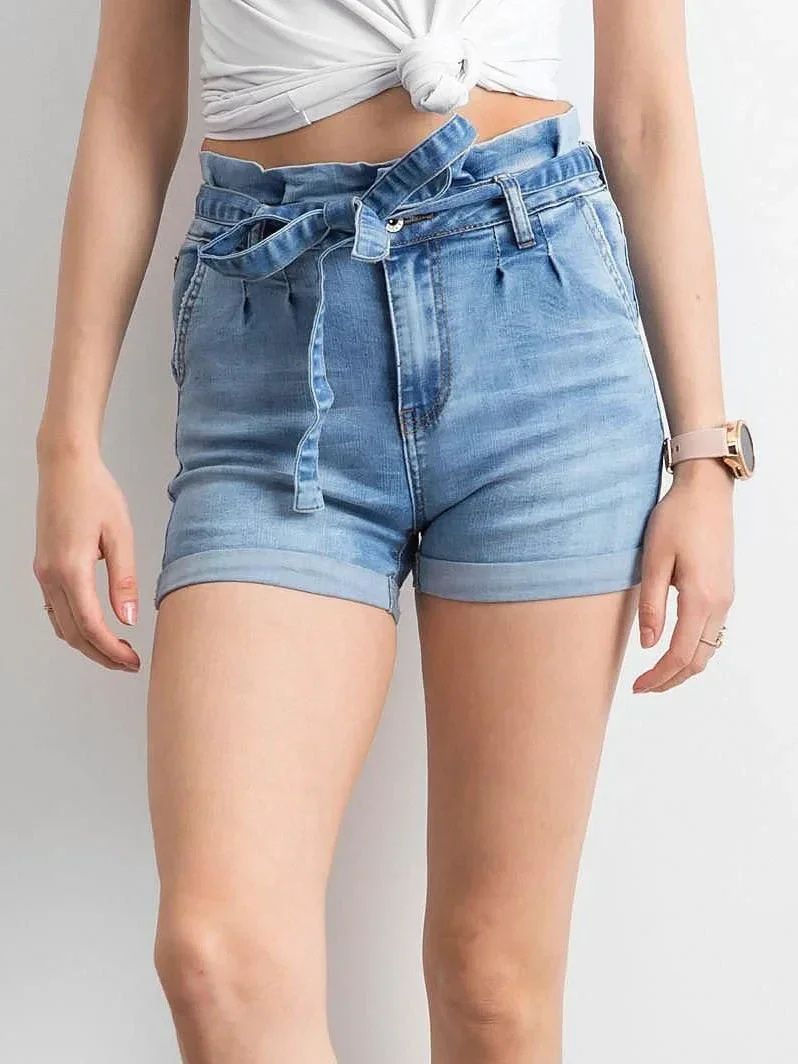 Džínové šortky s páskem v modré barvě.