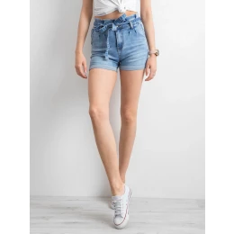 Džínové šortky s páskem v modré barvě.