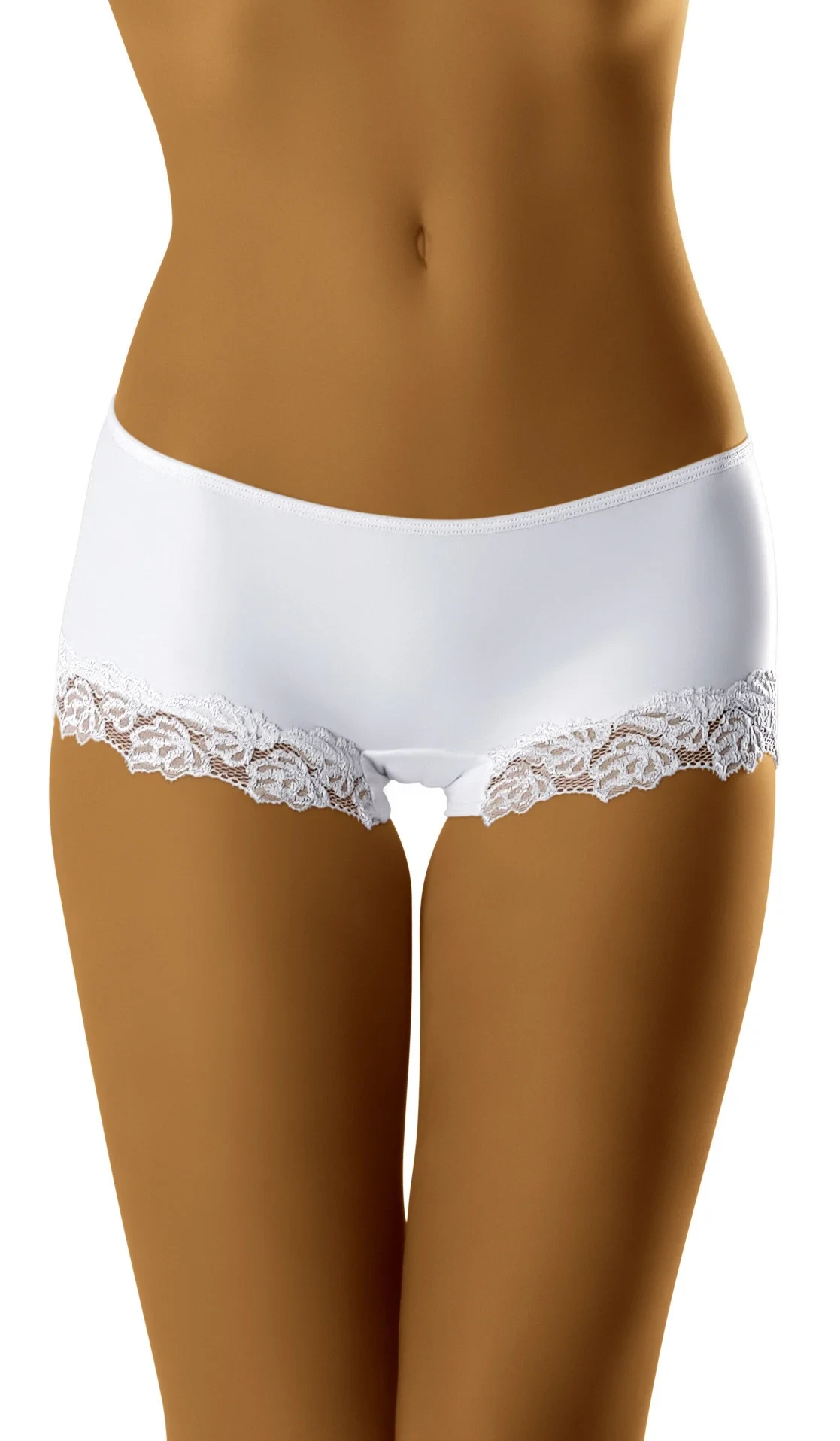 Okouzlující hladké šortky zakončené na nohavicích krásnou květinovou krajkou. Vyrobené z vysoce kvalitní, měkké, elastické tkaniny. Složení: 83 % polyamid, 17 % elastan.