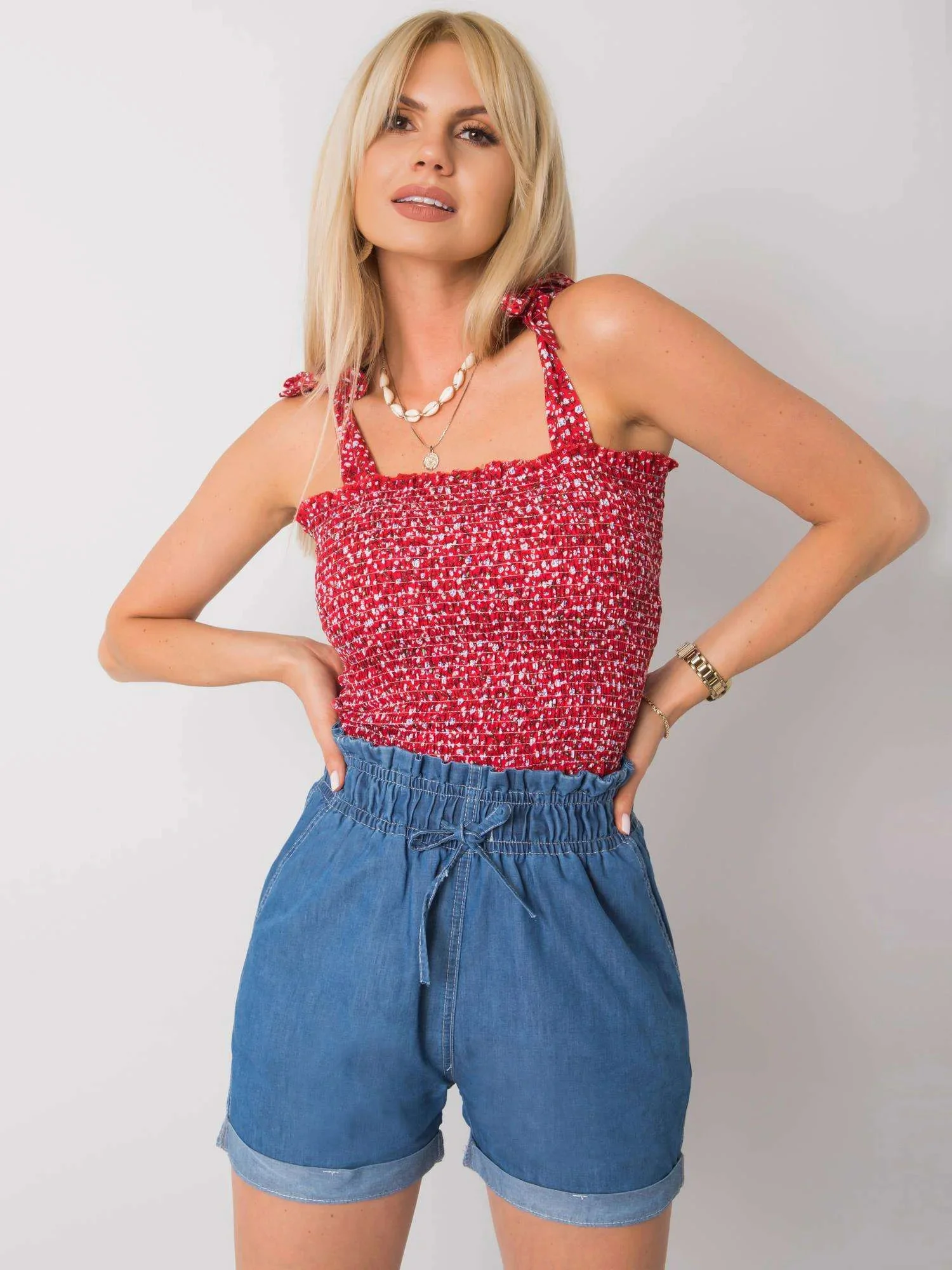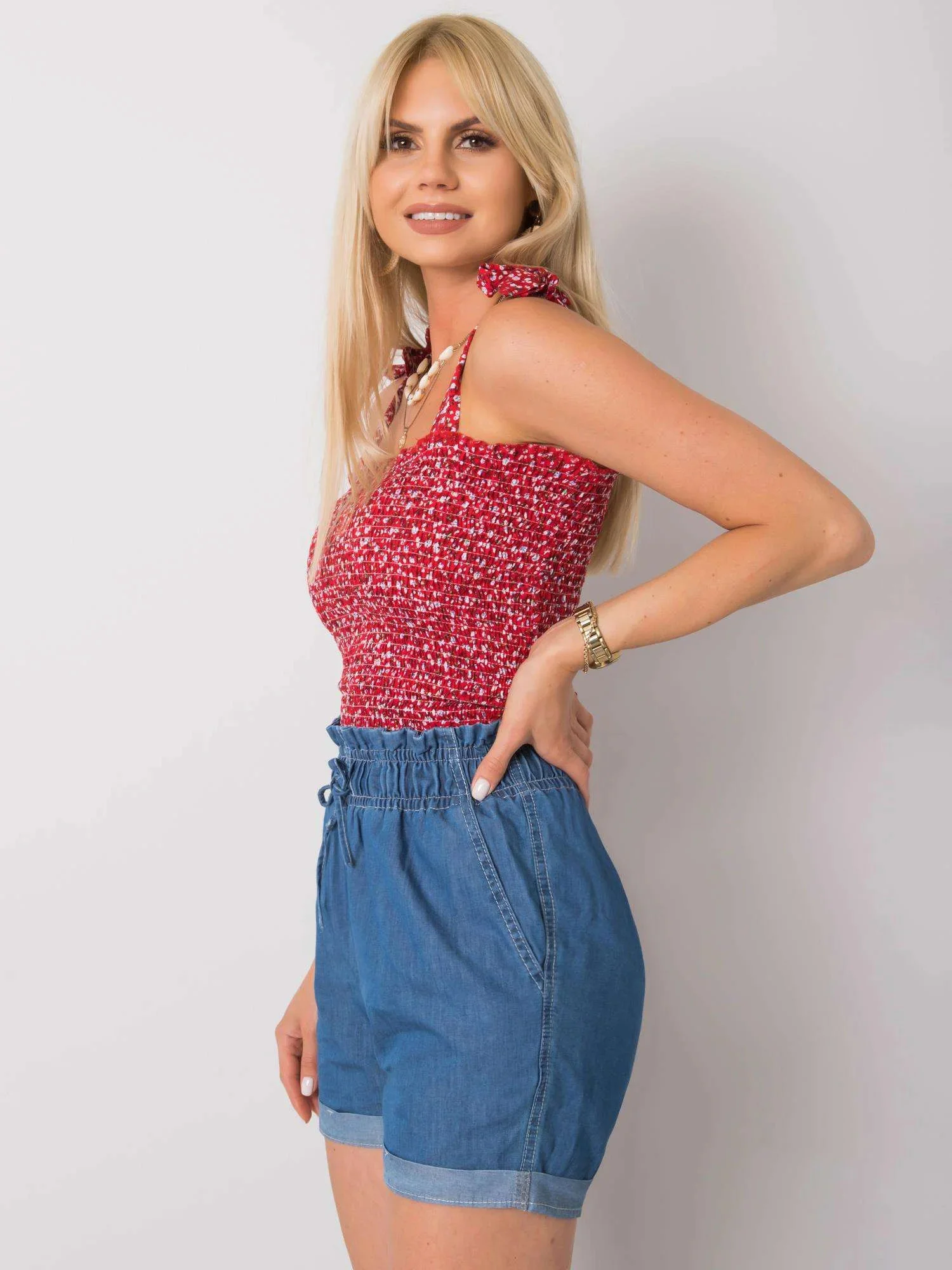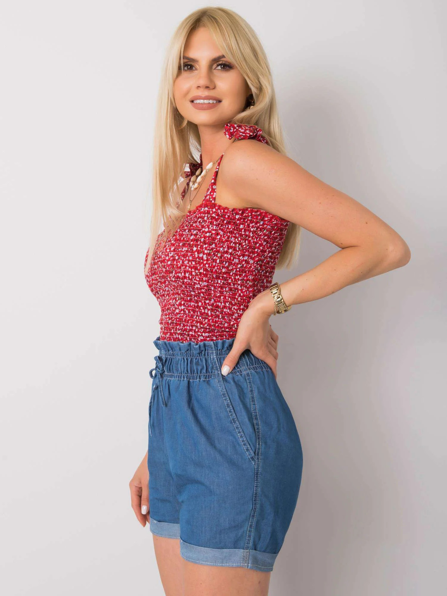Modelka má na sobě velikost S. Rozměry modelky: výška 175 cm, prsa 85 cm, pas 63 cm, boky 95 cm.