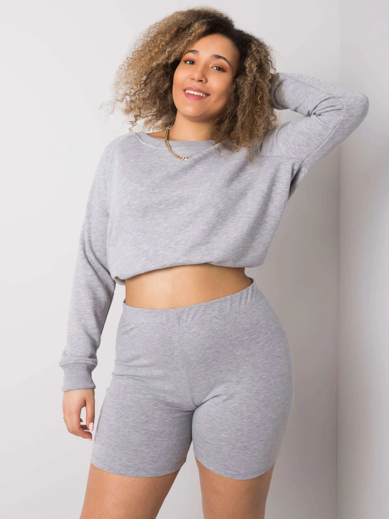 Šedé bavlněné plus size šortky.
