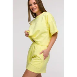 MATERIÁL Materiál: Silná mikinová tkanina 90% bavlna 10% polyester PODROBNOSTI O PRODUKTU Kapsy: Velké našité kapsy na přední straně Vzor: Jednobarevný Podšívka: Žádná Zapínání: Elastický pásek Model: B295 Navrženo a vyrobeno v Polsku Střih a střih Střih: Volný, pohodlný střih s vysokým pasem Tvar: Trapézové nohavice Délka: Krátké nohavice Použití: Ideální pro každodenní stylizaci - procházky, nákupy, výlety nebo odpočinek doma Typ postavy: Vhodné pro většinu postav, ideální pro hruškovité siluety - volné nohavice a vysoký pas pomáhají vyvážit proporce Modelka na fotografii je vysoká 170 cm a má na sobě velikost S