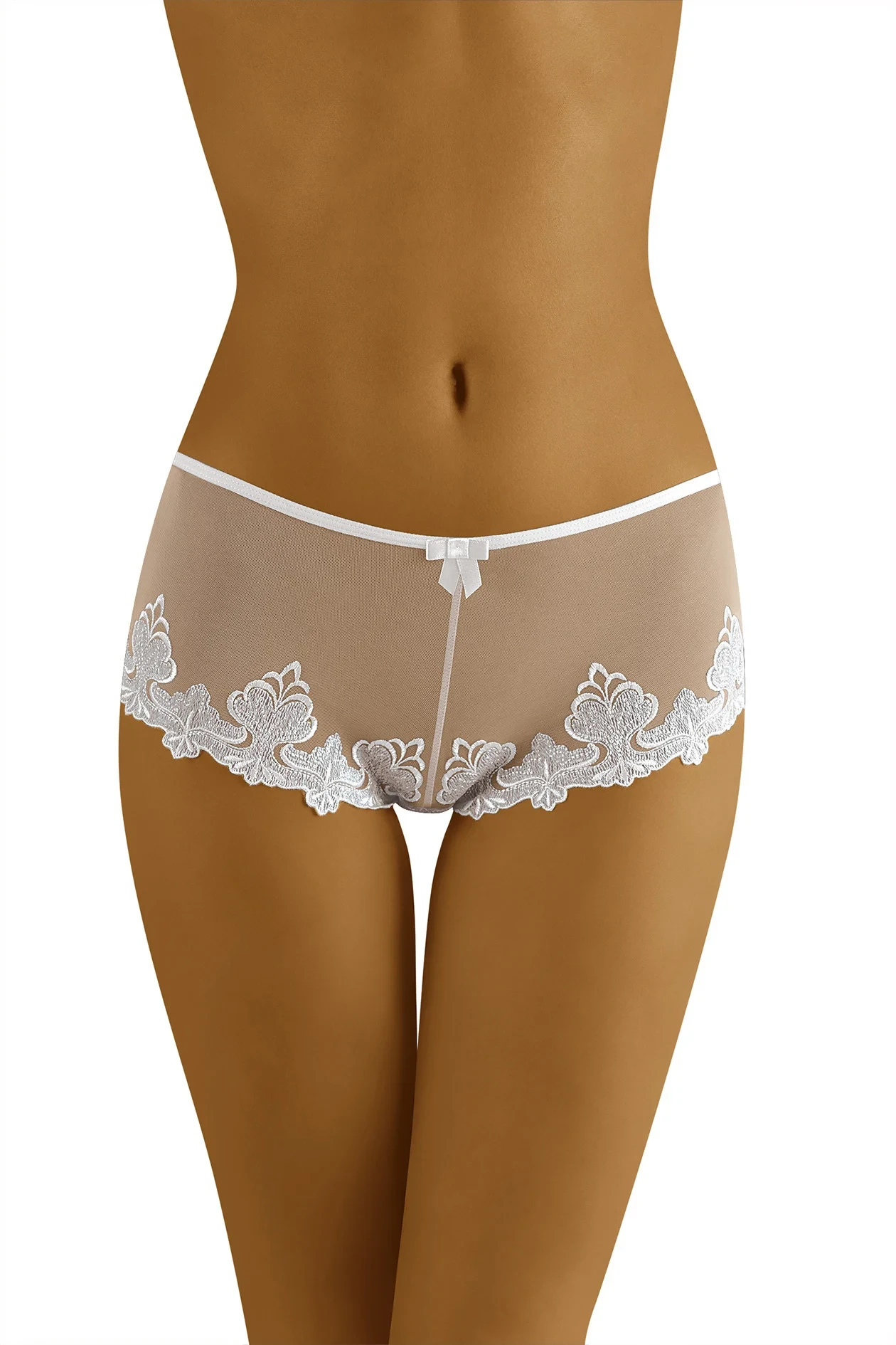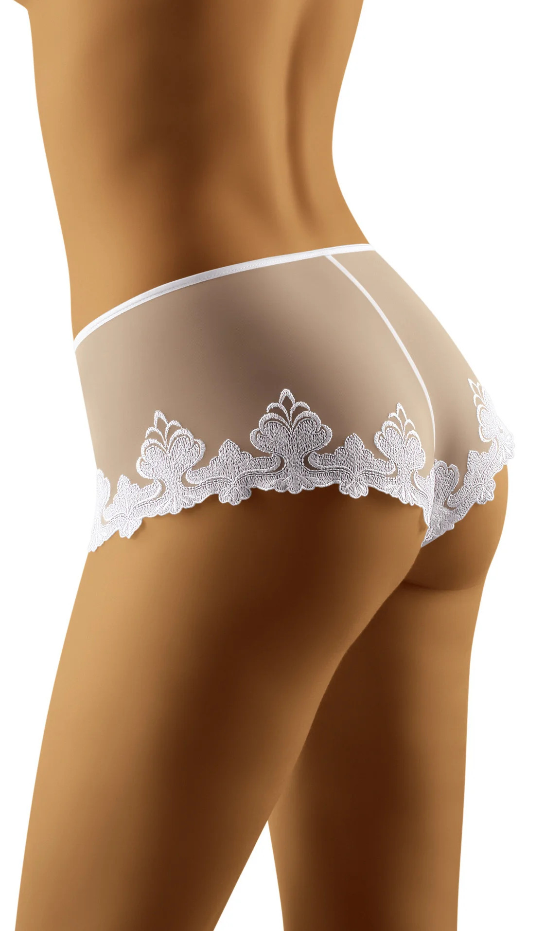 Zajímavé, ženské a smyslné - bílé šortky z krásně vyšívané krajky. Výšivka v oblasti stehen s mírně orientálním výrazem. Složení: 87 % polyamid, 13 % elastan.EAN čárové kódy zboží jsou: