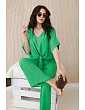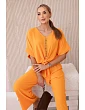 Italský komplet s halenkou zavazovanou vpředu a širokými kalhotami je ideální volbou pro ženy, které ocení pohodlí a styl vjednom. Halenka se zapíná vpředu na knoflíky, což jí dodává jemnou ženskost. Široké kalhoty z tkaniny příjemné na dotek pro volnost pohybu a pohodlné nošení. Takovou kompletní sadu můžete nosit při různých příležitostech - do práce, na rande nebo na setkání s přáteli. V kombinaci s elegantními botami a doplňky, jako je kabelka nebo šperky, vytvoří stylový a módní vzhled. Velikost je univerzální a vyhovuje dámám velikosti S, M nebo L.
