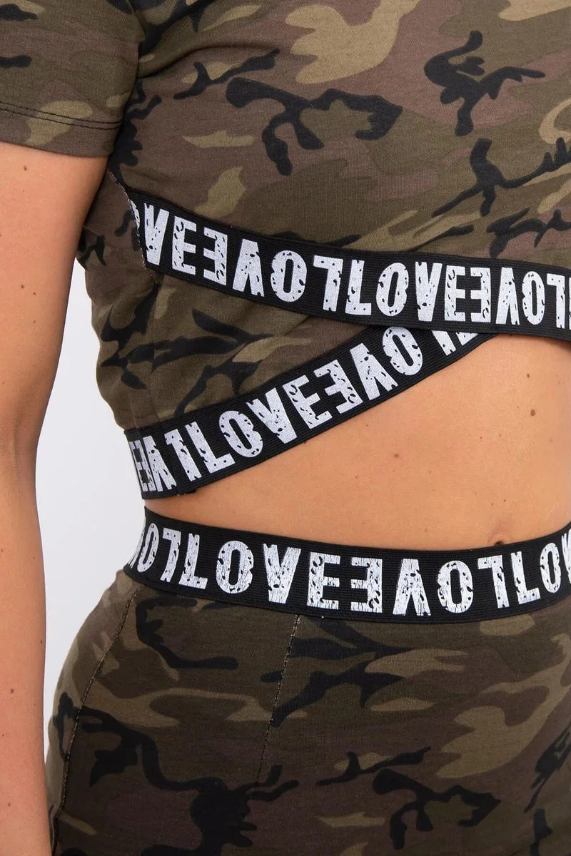 Představujeme vám sadu halenky se sukní. Na halence i sukni je stuha s nápisem Love. Sada s potiskem moro. Sada je vyrobena z vysoce kvalitního materiálu. Velikost je univerzální a vyhovuje dámám velikosti S, M nebo L.