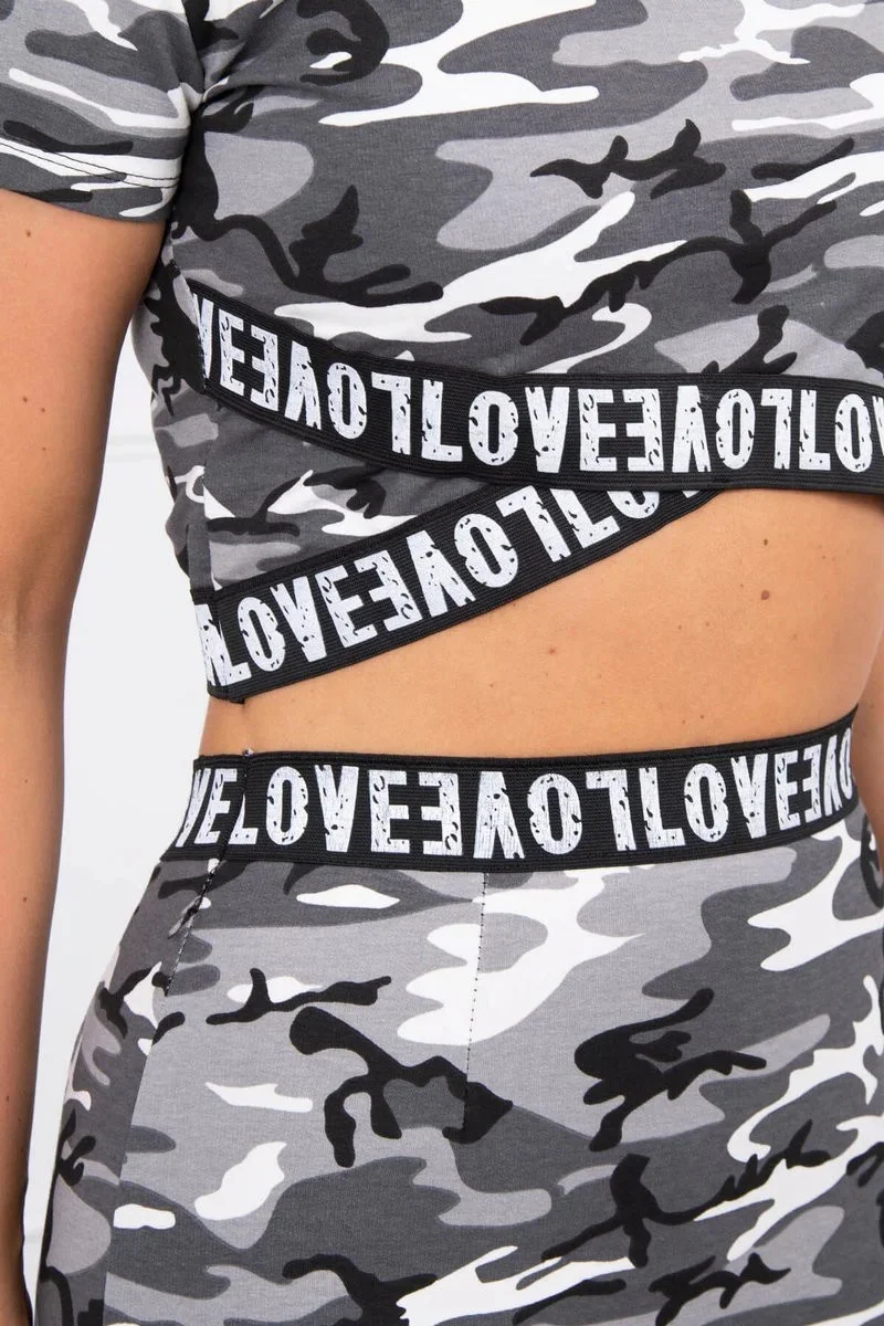 Představujeme vám sadu halenky se sukní. Na halence i sukni je stuha s nápisem Love. Sada s potiskem moro. Sada je vyrobena z vysoce kvalitního materiálu. Velikost je univerzální a vyhovuje dámám velikosti S, M nebo L.