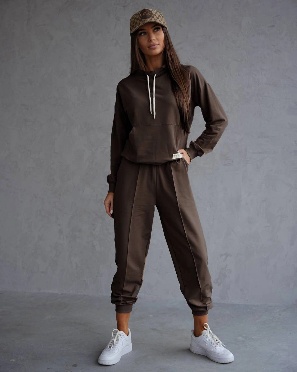 Souprava mikiny se stojáčkem a kalhotami čokoládová (82162)
