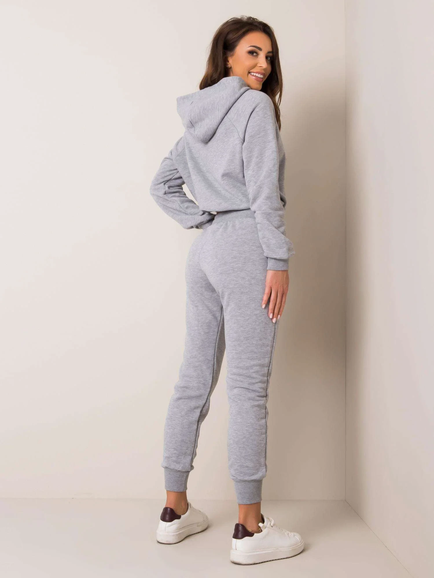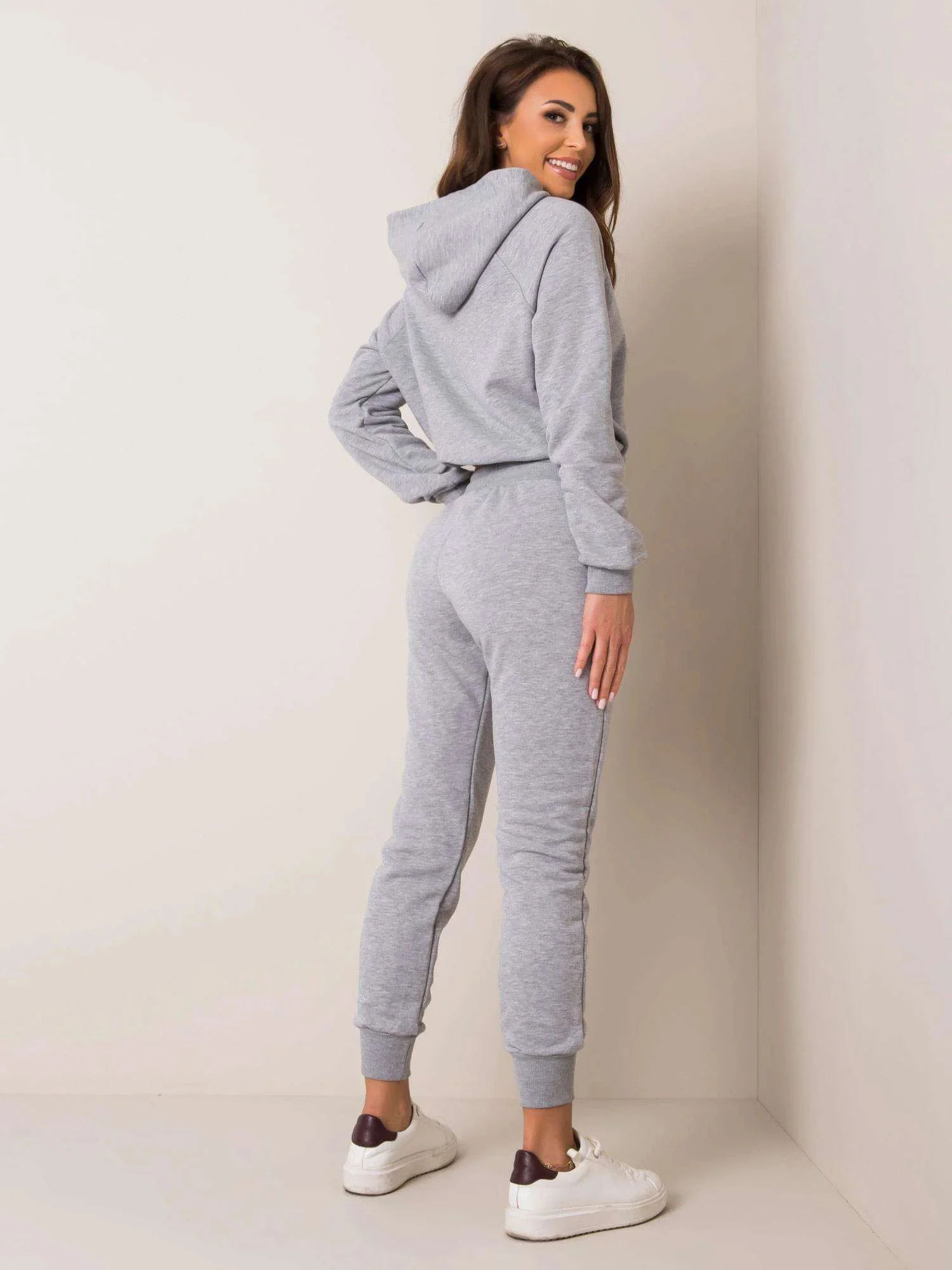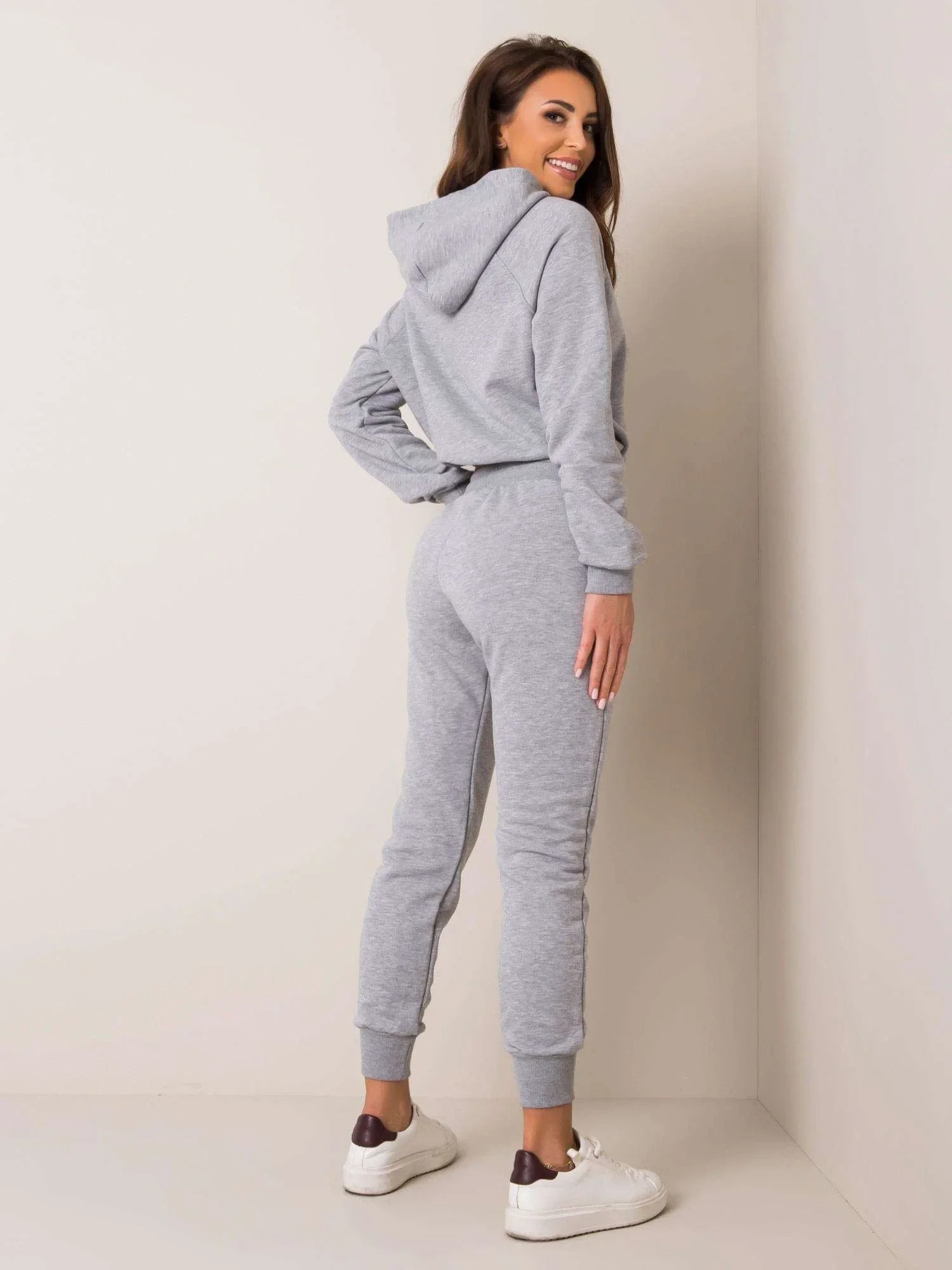 Šedá tepláková souprava.
