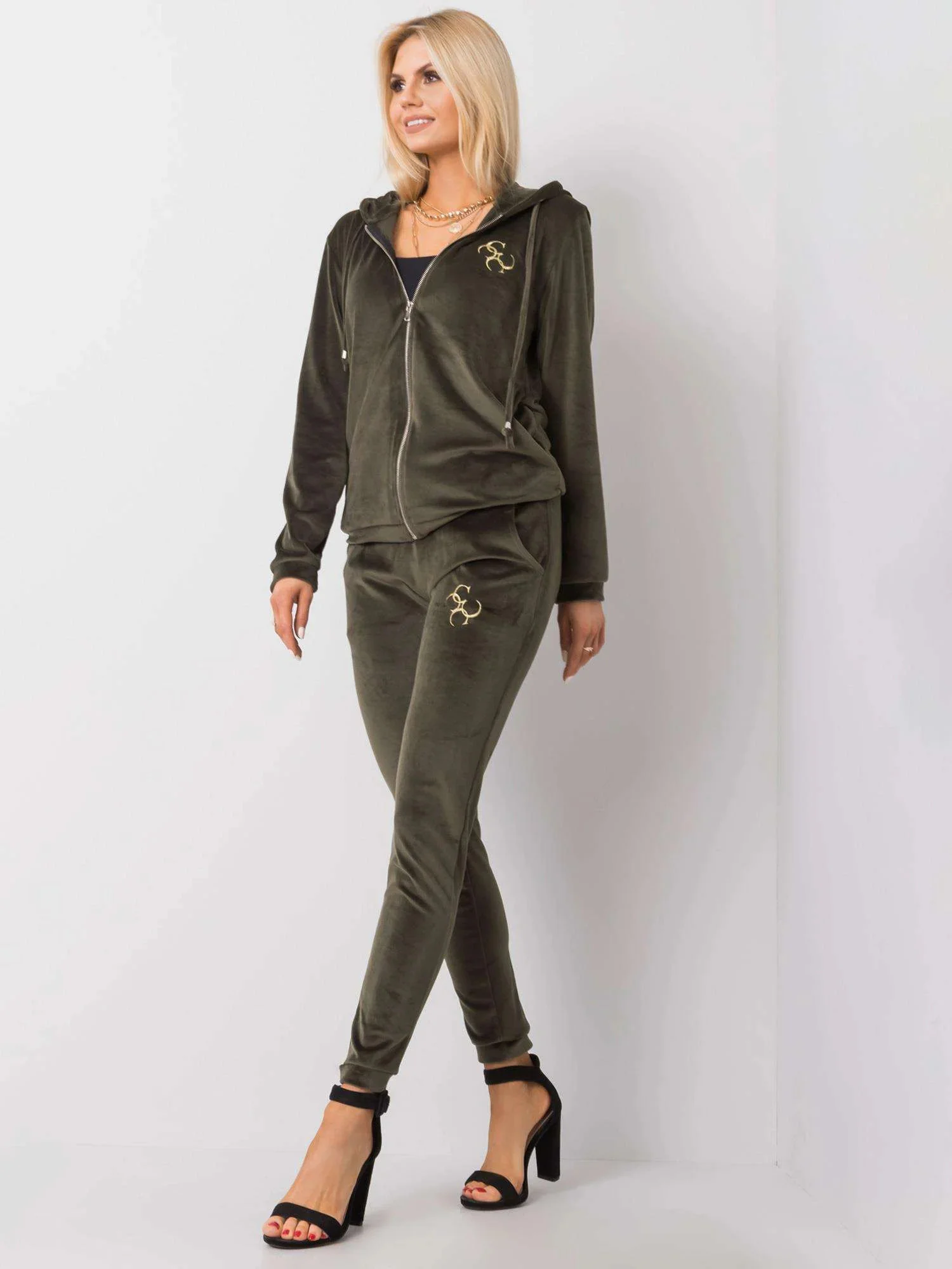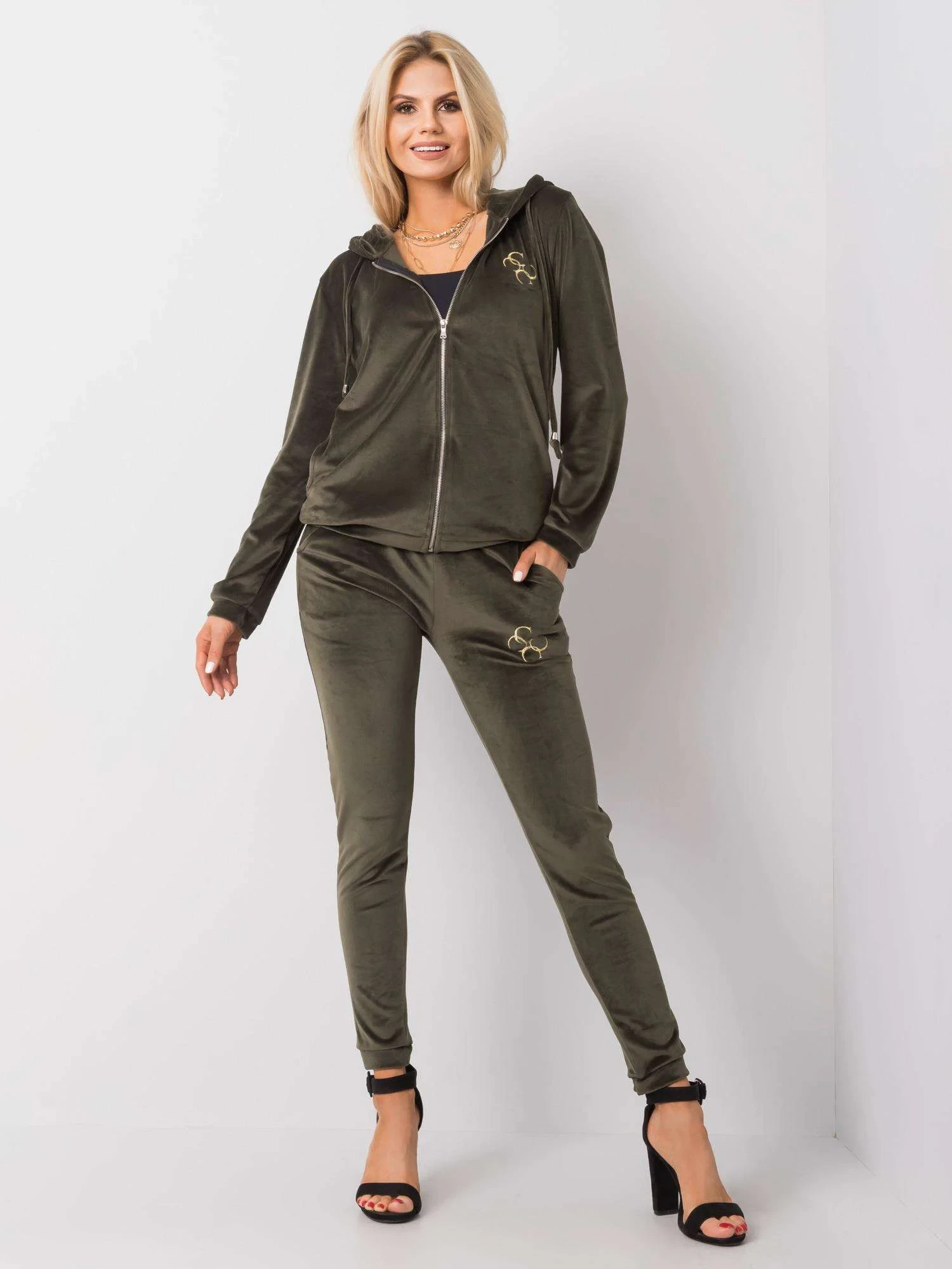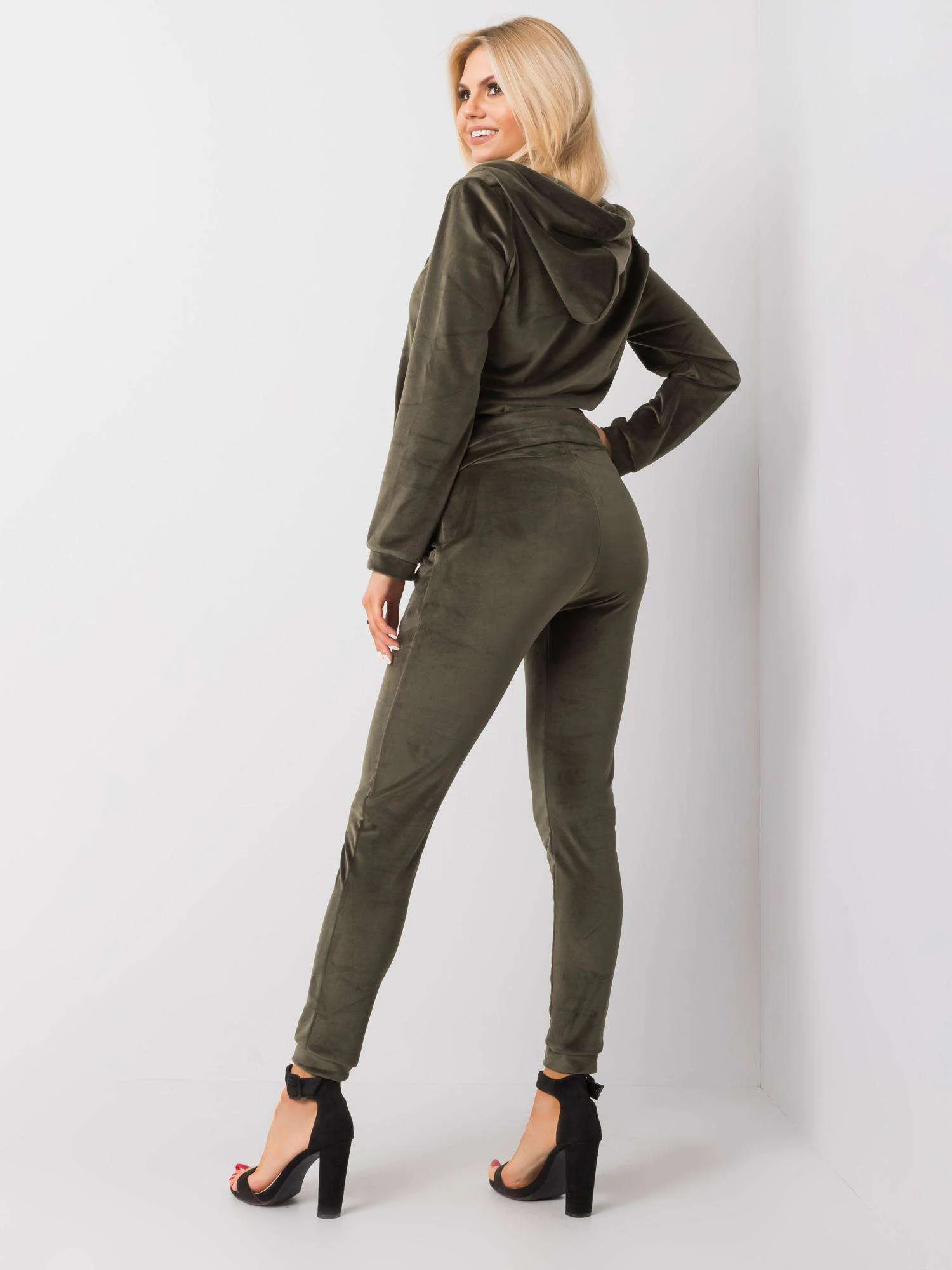 Khaki dámská velurová souprava.