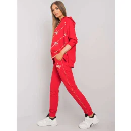 Červená tepláková souprava s kalhotami.