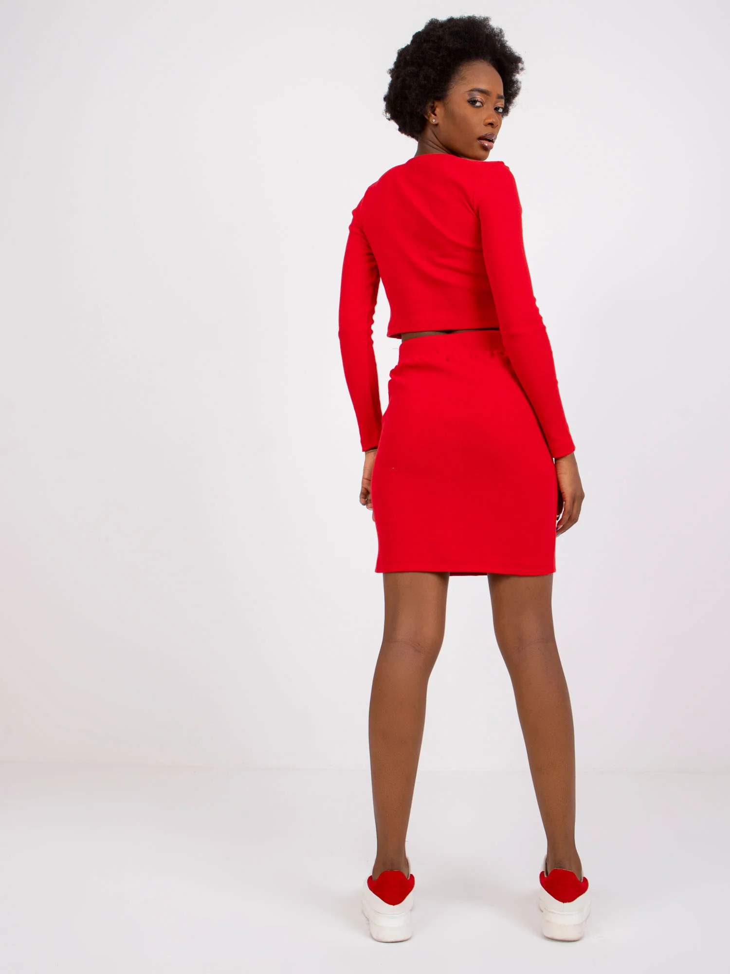 Rozměry soupravy ve velikosti S měřené na plocho: šířka v podpaží - 35 cm, délka halenky - 40 cm, délka rukávu - 57 cm, šířka v pase - 30 cm, šířka v bocích - 37 cm, délka sukně - 47 cm (elastický materiál).