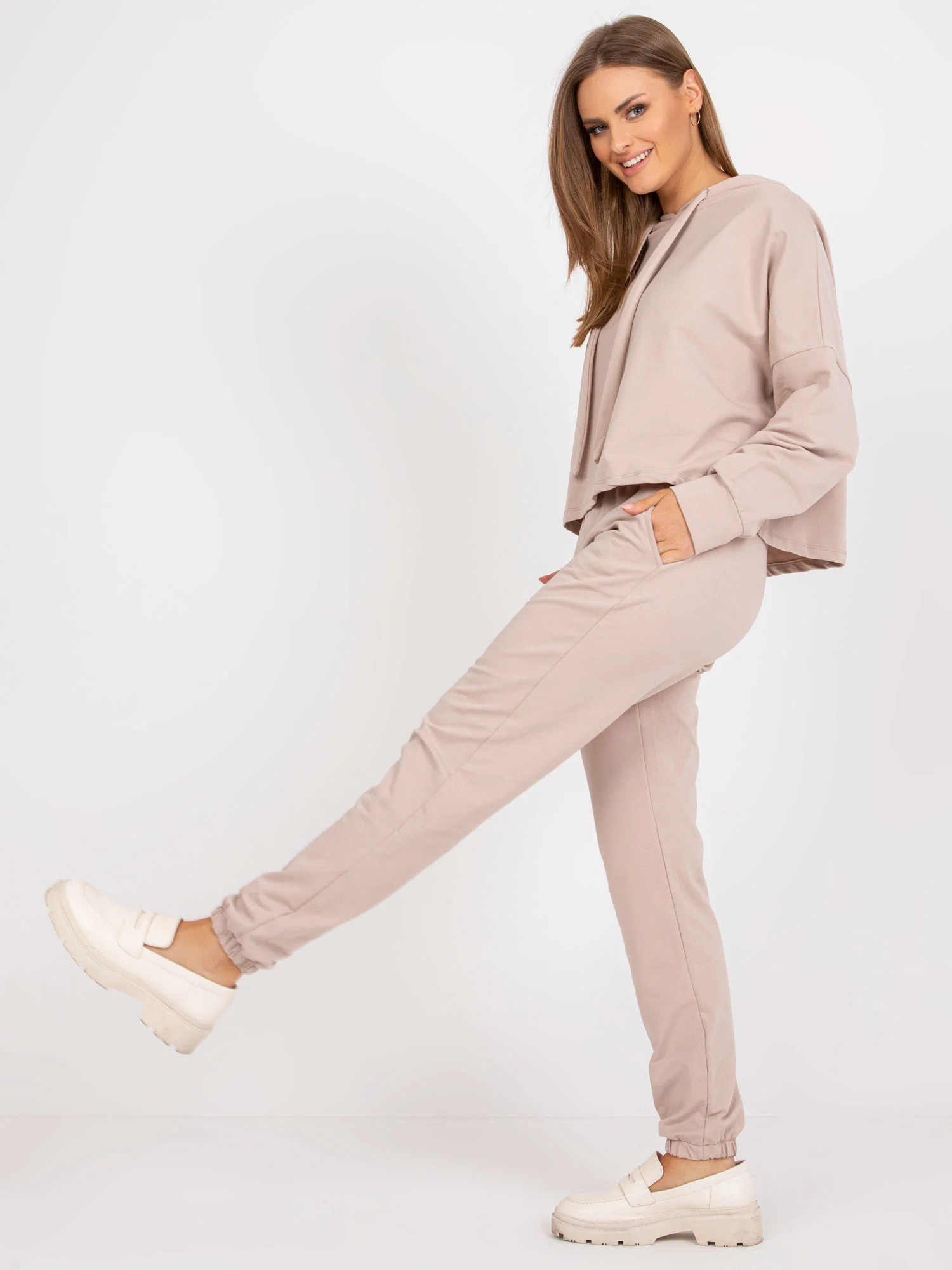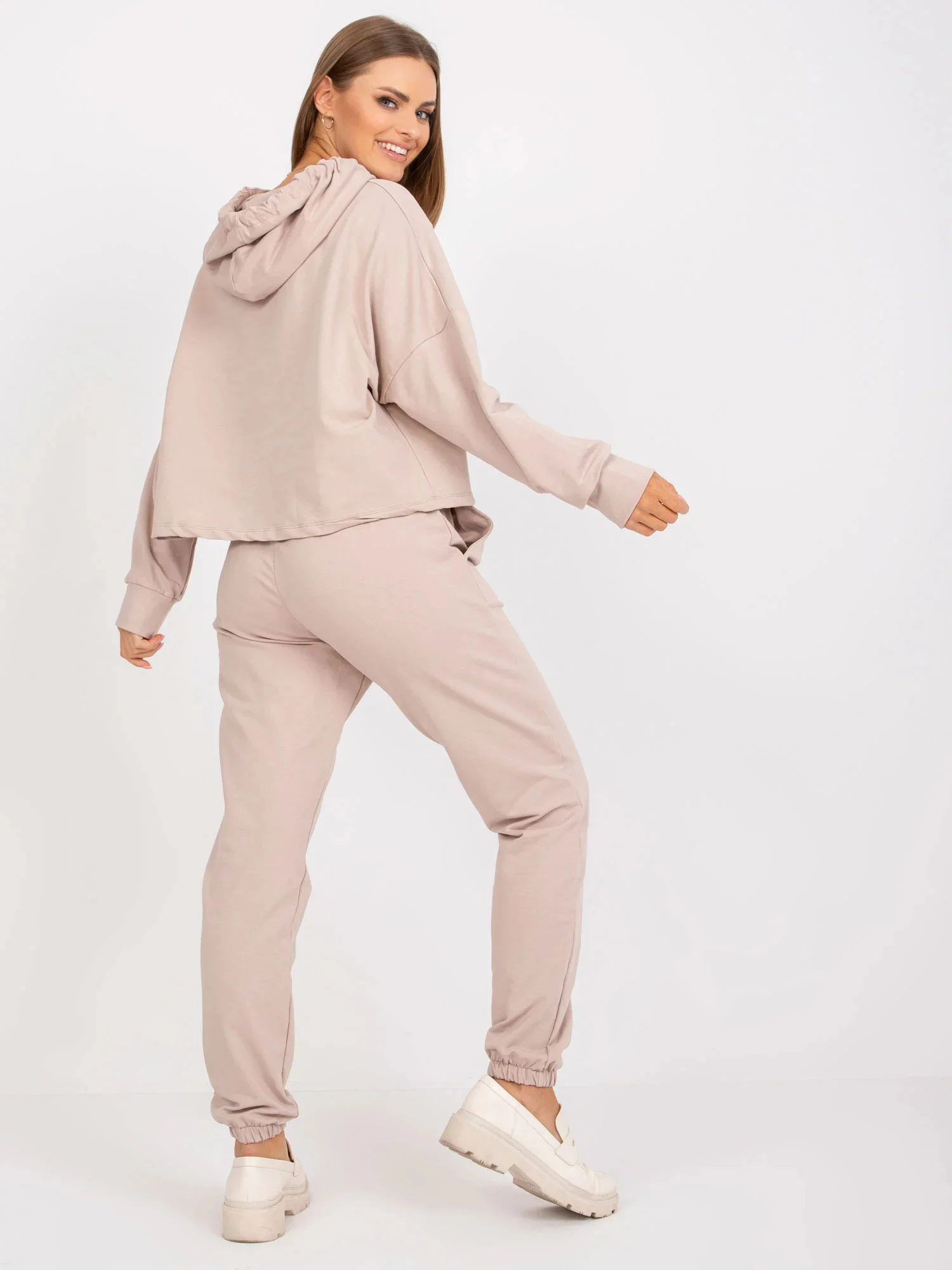 Rozměry soupravy ve velikosti S/M měřené na plocho: šířka mikiny v podpaží - 71 cm, délka rukávu - 58 cm, délka mikiny - 53 cm, šířka kalhot v pase - 34 cm, délka kalhot - 100 cm.
