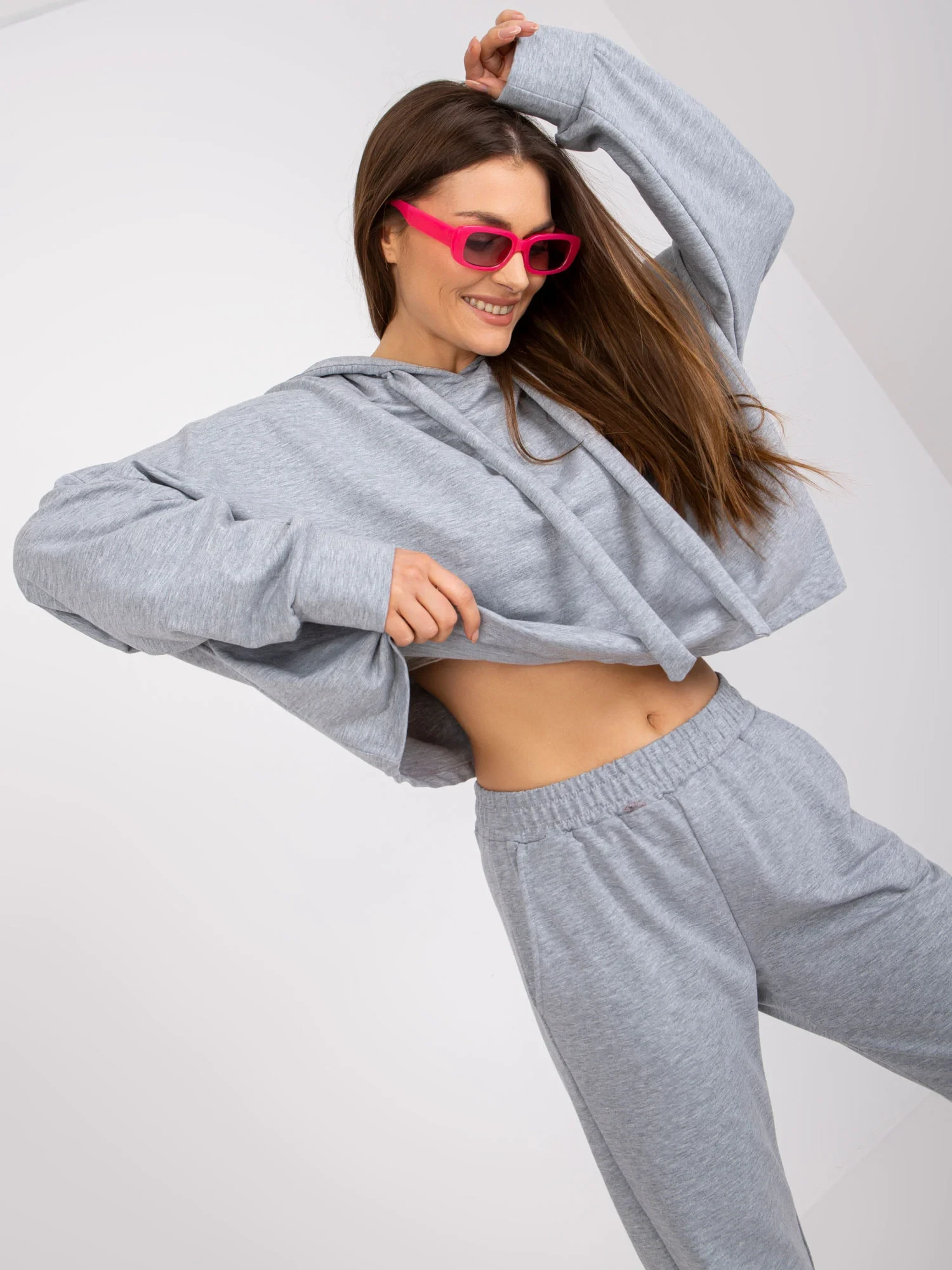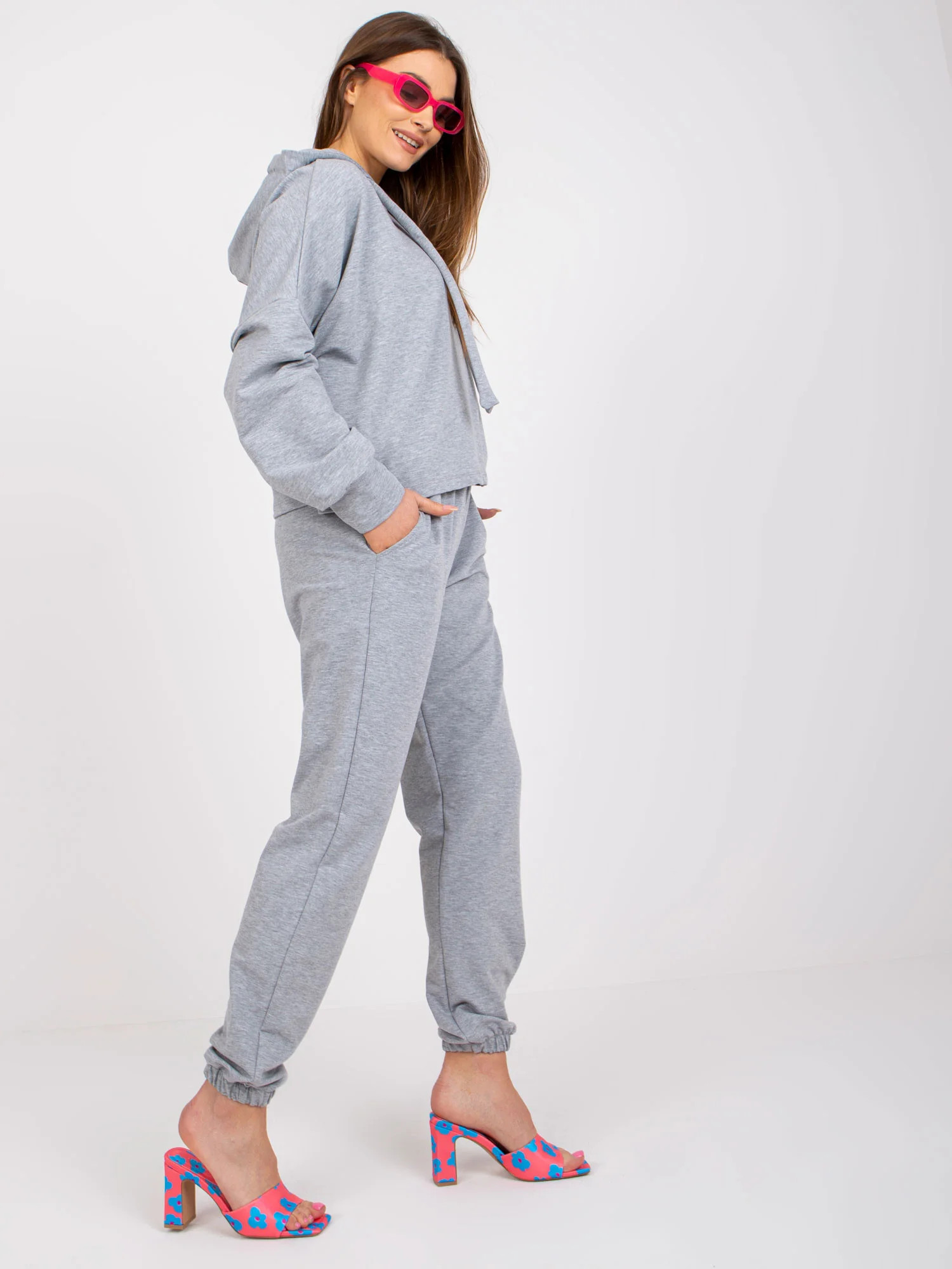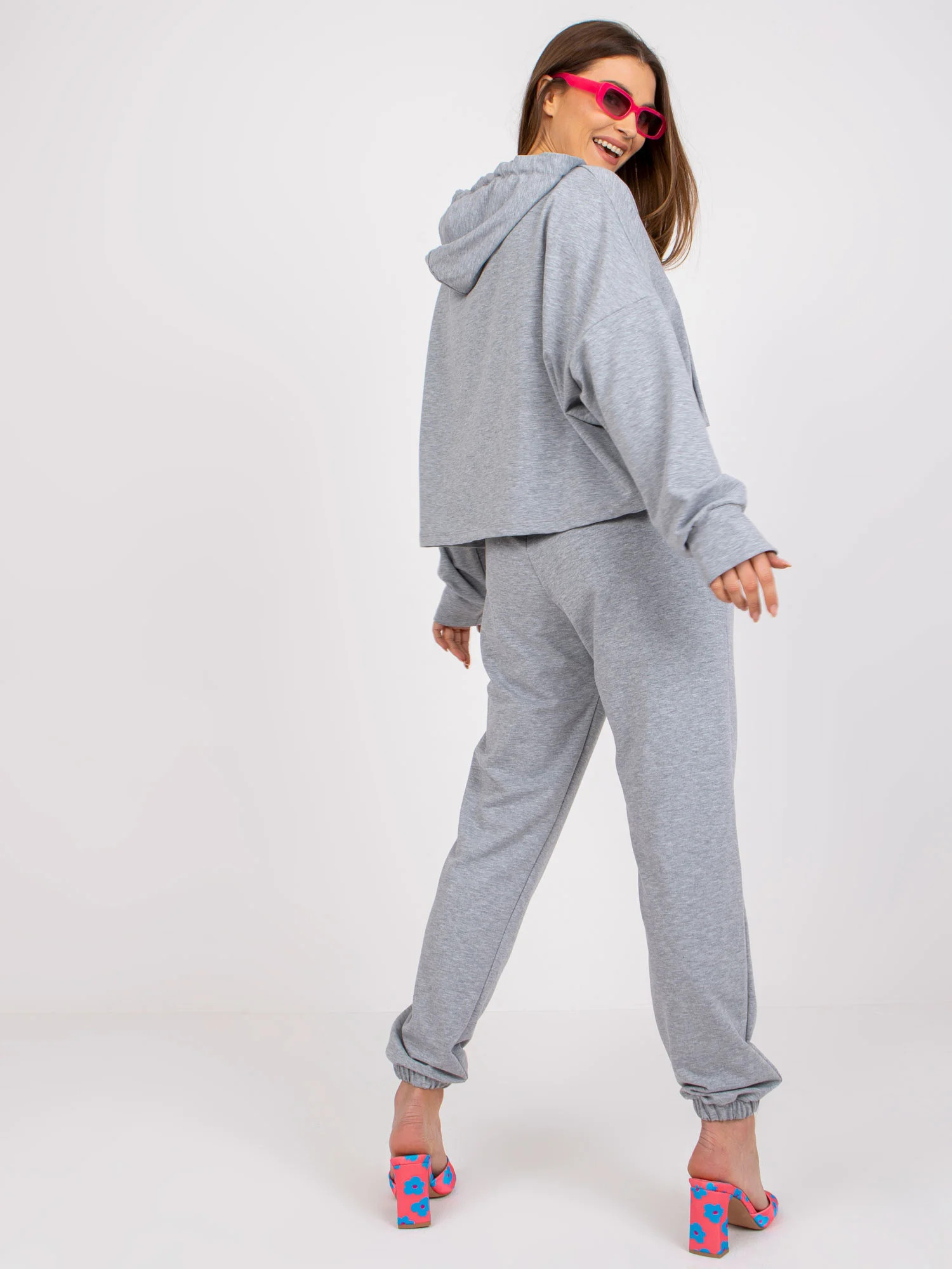Rozměry soupravy ve velikosti S/M měřené na plocho: šířka mikiny v podpaží - 71 cm, délka rukávu - 58 cm, délka mikiny - 53 cm, šířka kalhot v pase - 34 cm, délka kalhot - 100 cm.