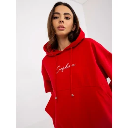 Červená tepláková souprava s kapucí .