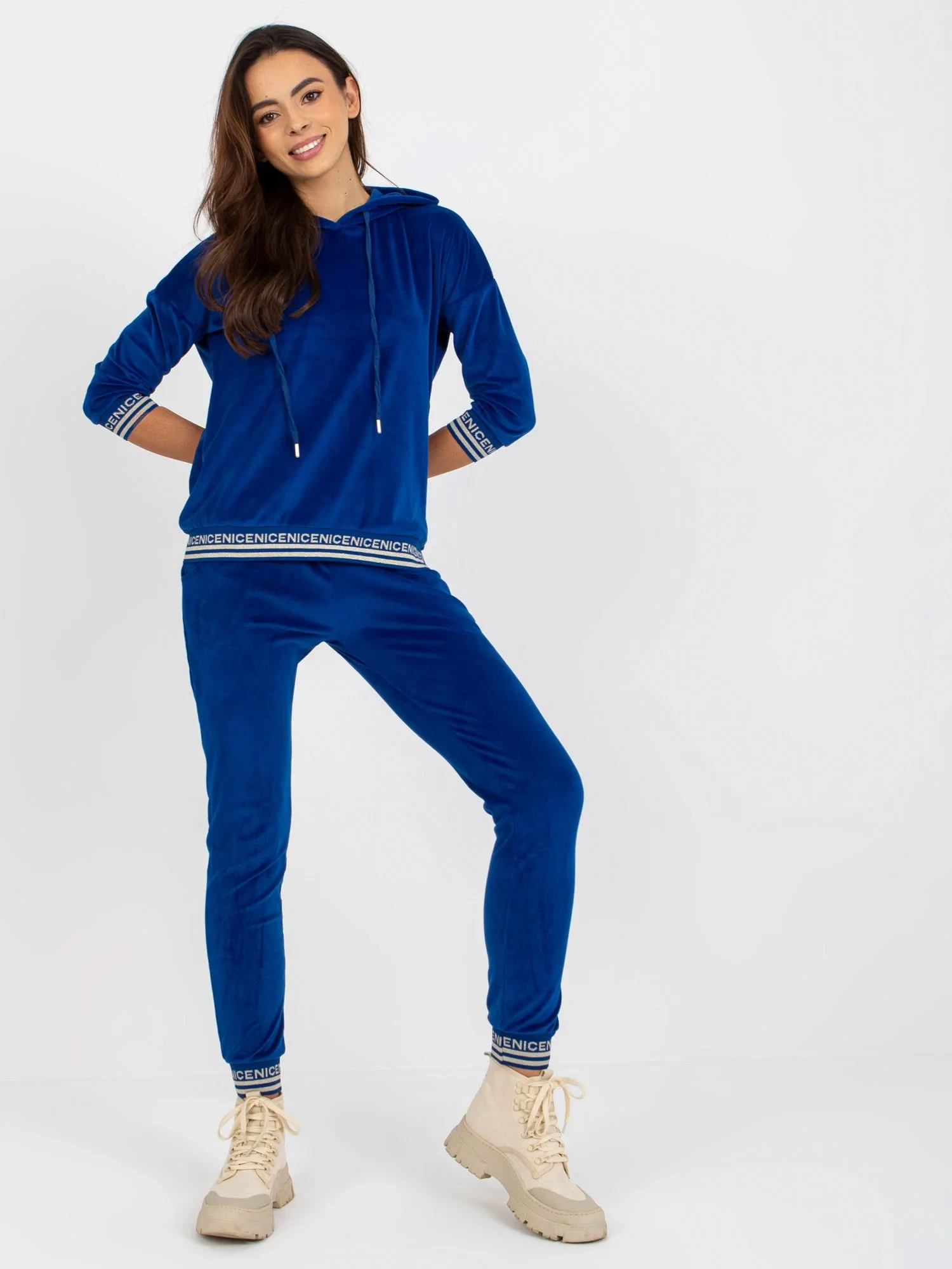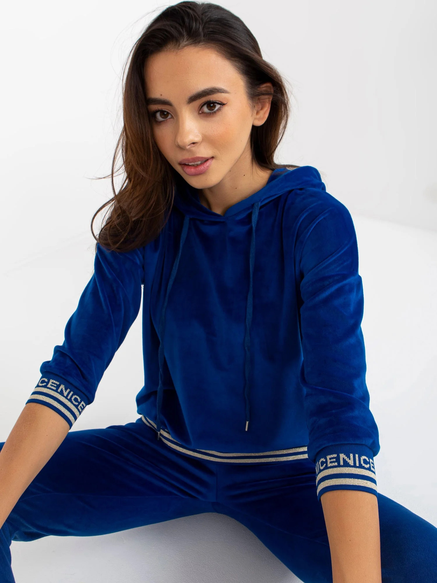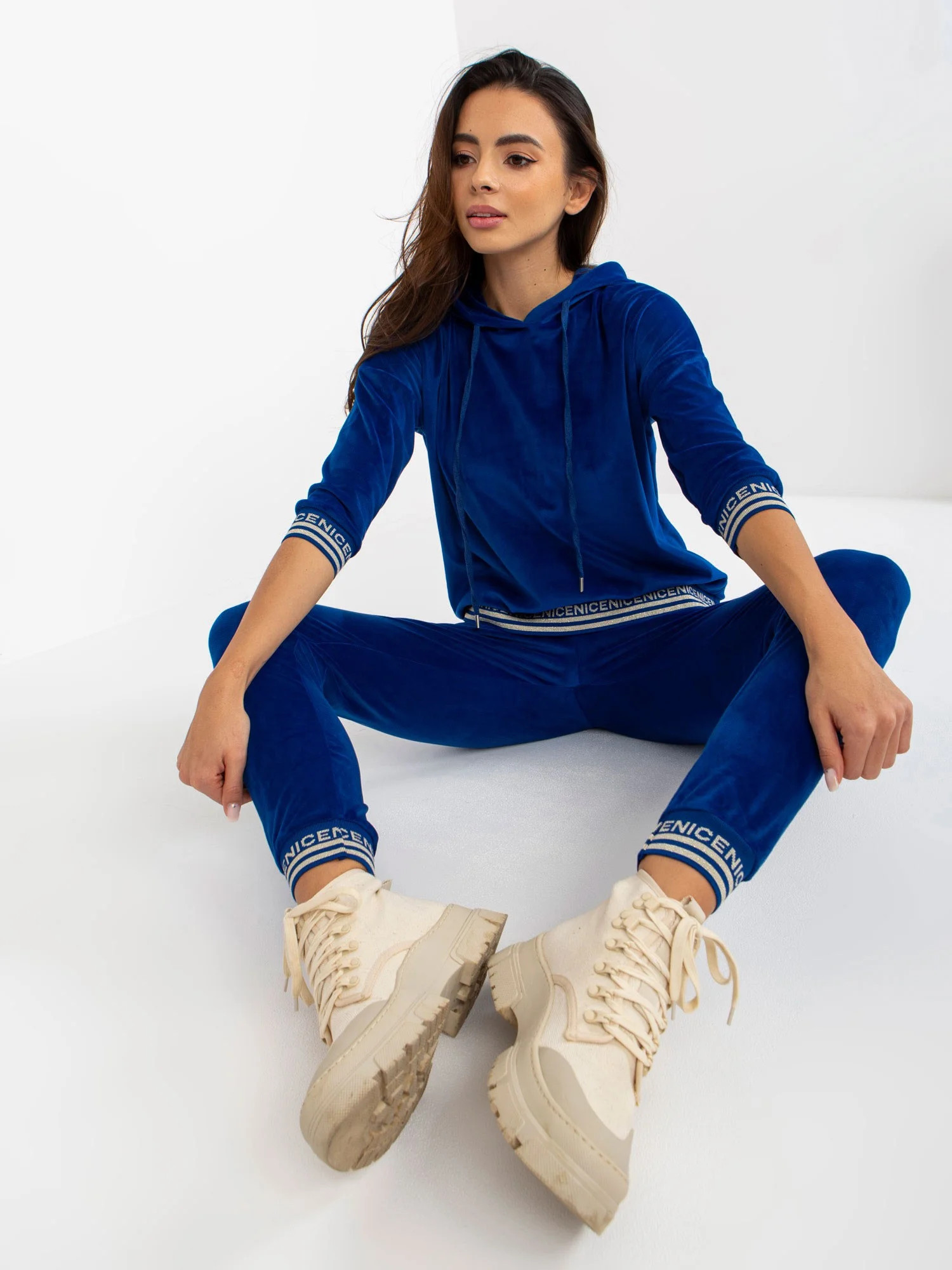 Rozměry soupravy ve velikosti S/M měřené na plocho: šířka v podpaží - 57 cm, délka halenky - 60 cm, délka rukávu - 45 cm, šířka v pase - 36 cm, výška v pase - 26 cm, délka kalhot - 97 cm.